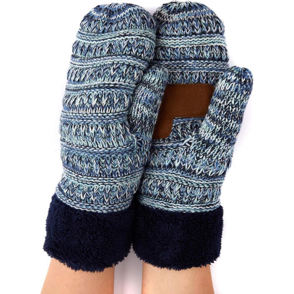 C.C CC Super Thick Fuzzy Fleeced Lined Warm Winter Knitted Mittens Gloves(Quad Navy)