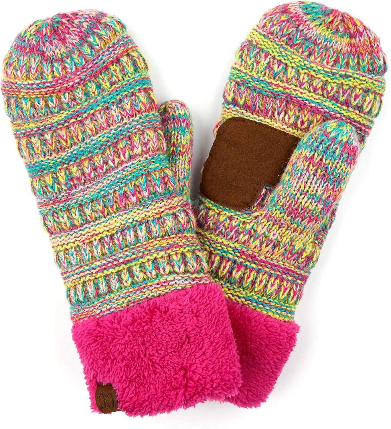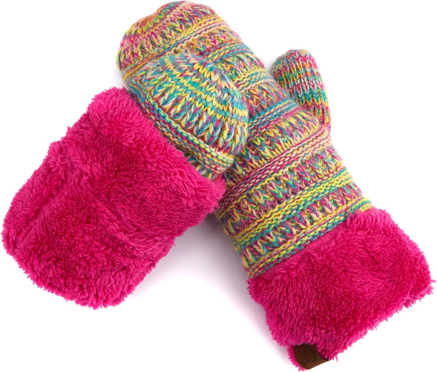 C.C CC Super Thick Fuzzy Fleeced Lined Warm Winter Knitted Mittens Gloves(Quad Rainbow)
