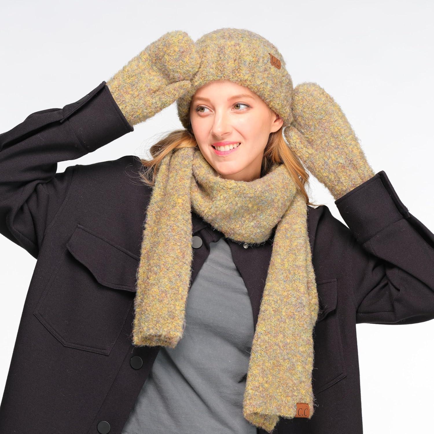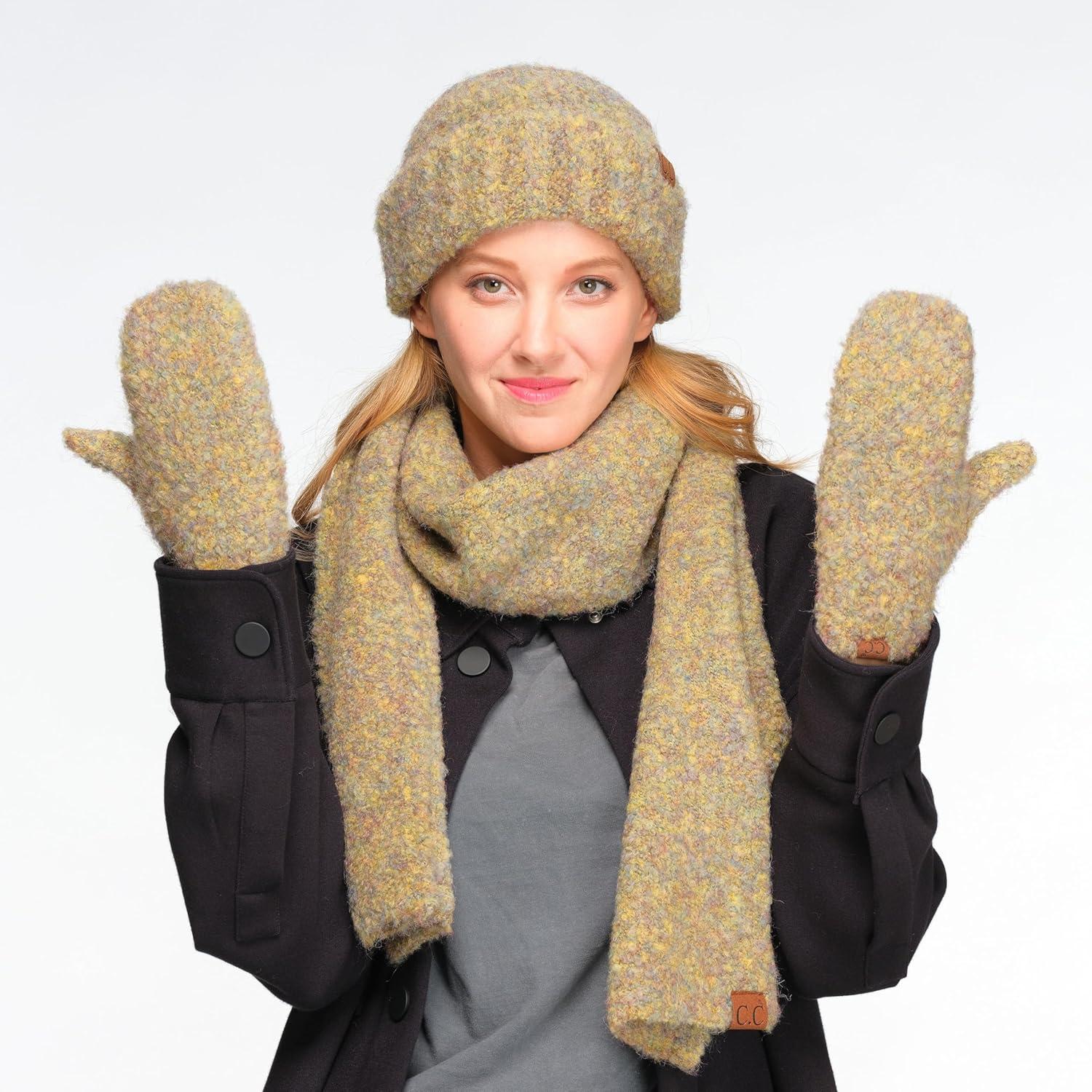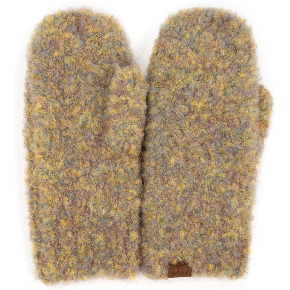 C.C CC Super Thick Fuzzy Fleeced Lined Warm Winter Knitted Mittens Gloves(Recycled Non Lined Boucle Olive)