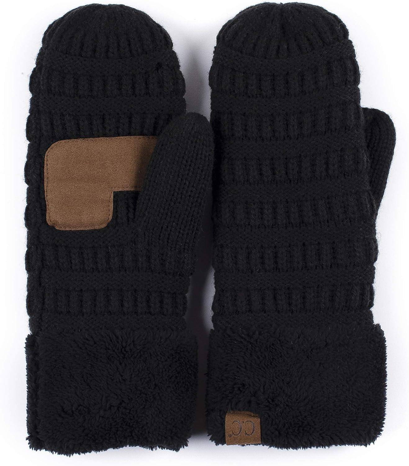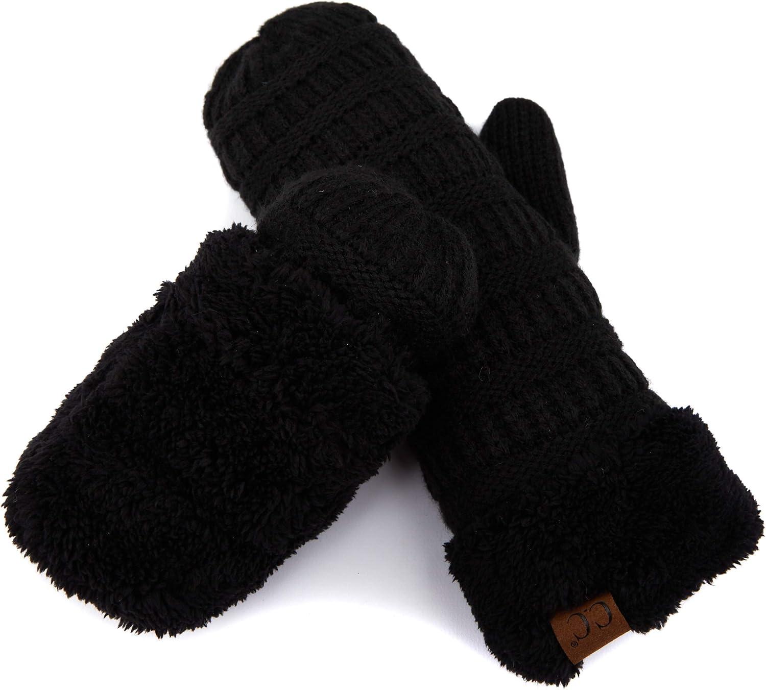 C.C CC Super Thick Fuzzy Fleeced Lined Warm Winter Knitted Mittens Gloves(Solid Black)