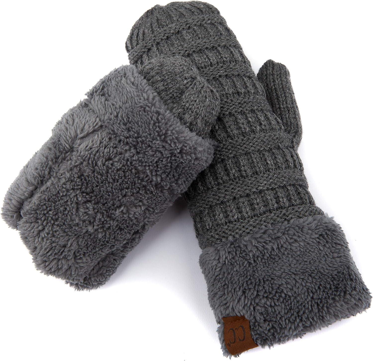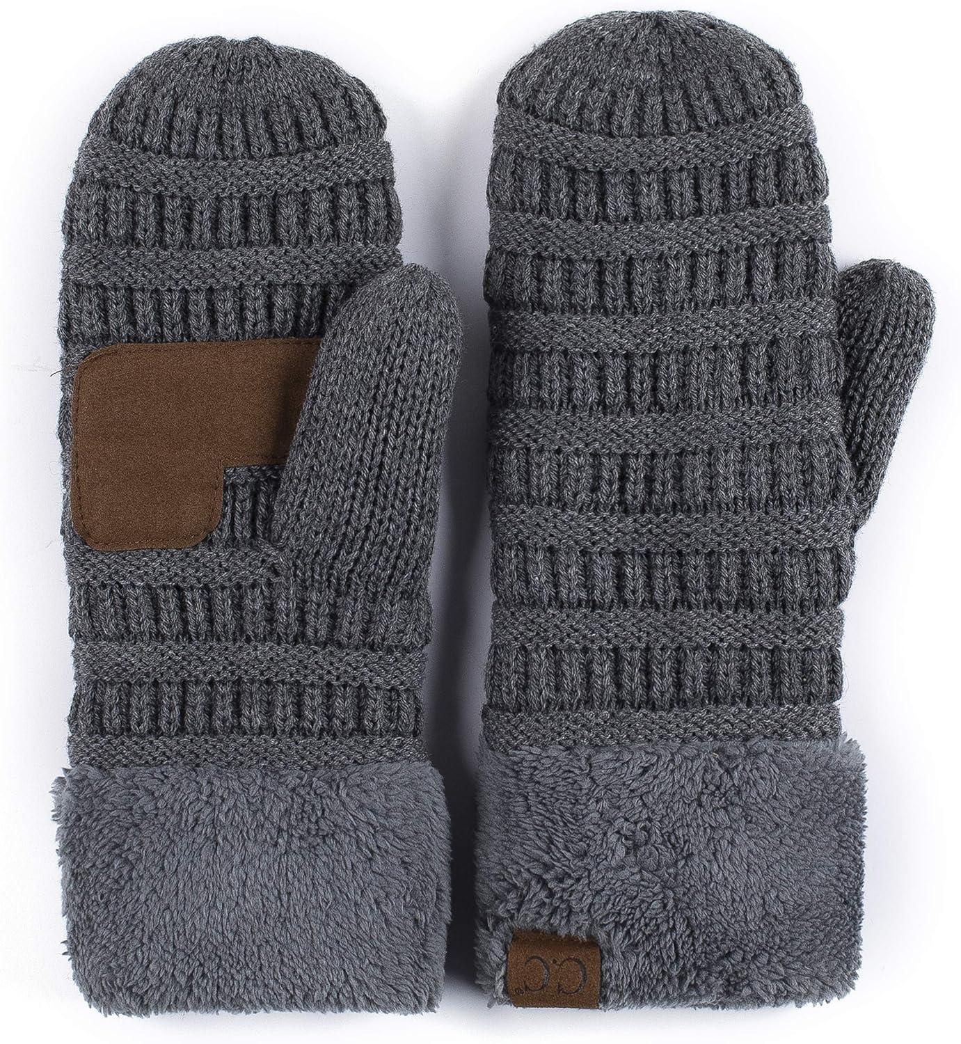 C.C CC Super Thick Fuzzy Fleeced Lined Warm Winter Knitted Mittens Gloves(Solid Dk. Melange Gray)