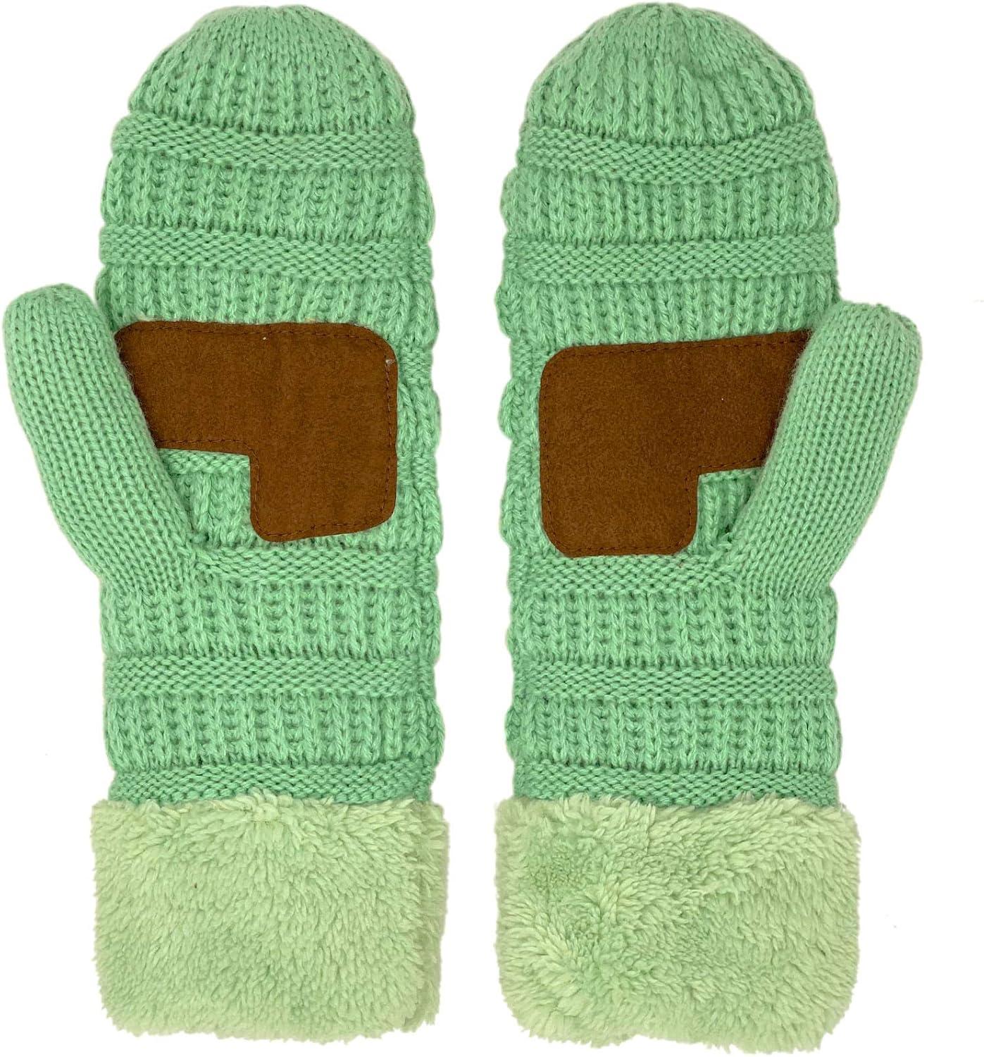 C.C CC Super Thick Fuzzy Fleeced Lined Warm Winter Knitted Mittens Gloves(Solid Mint)