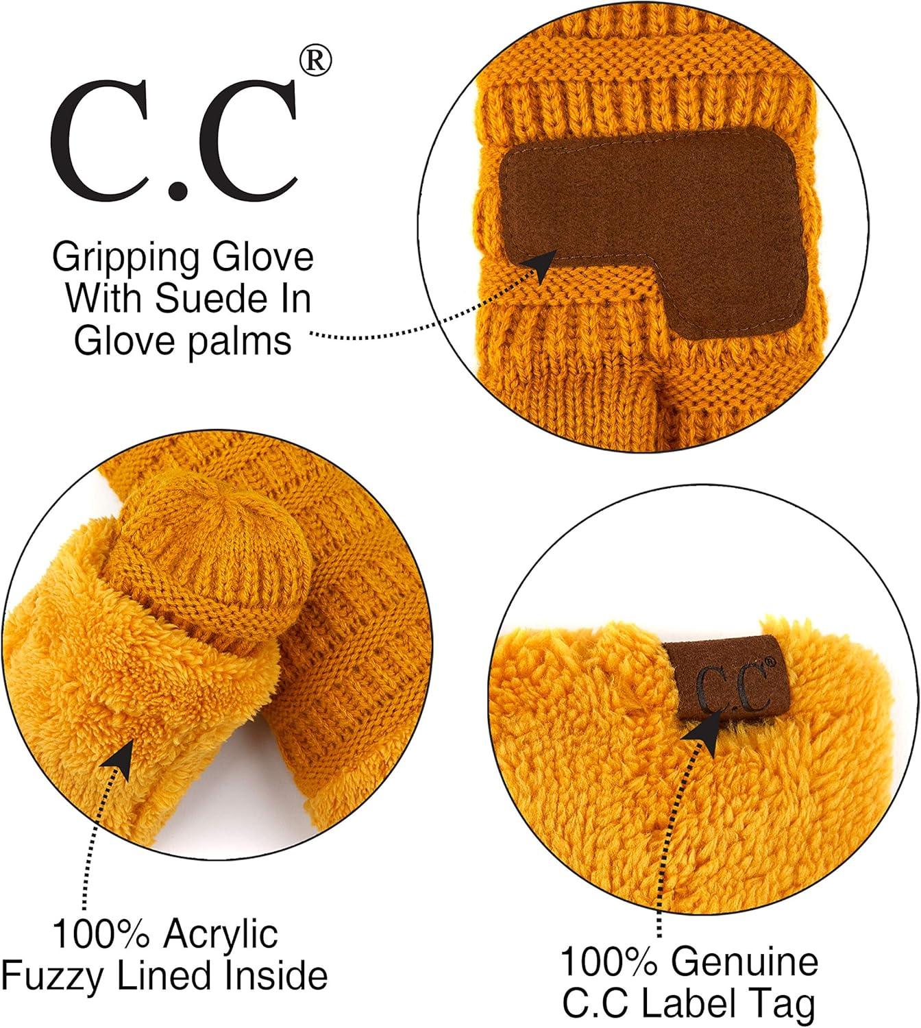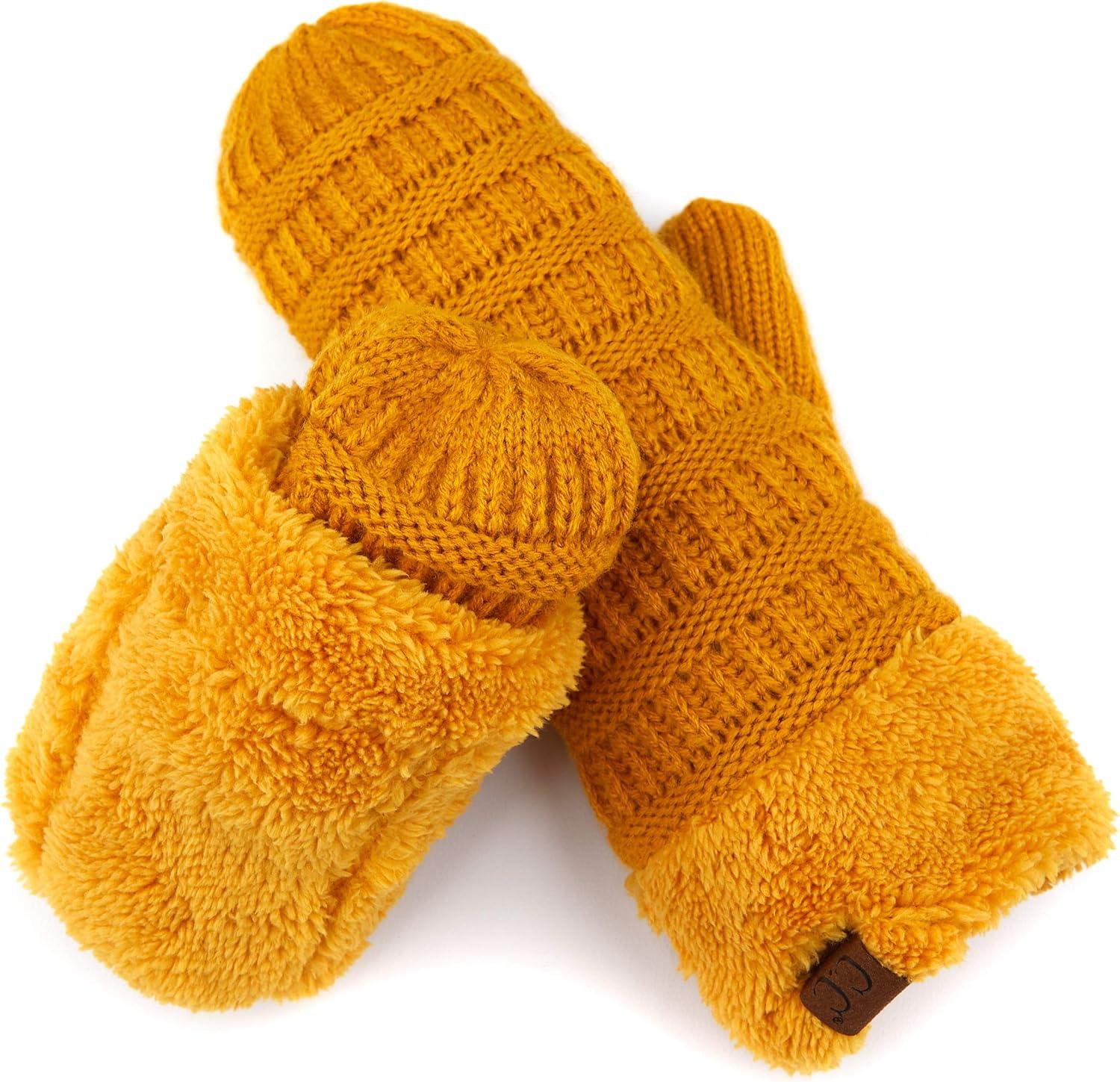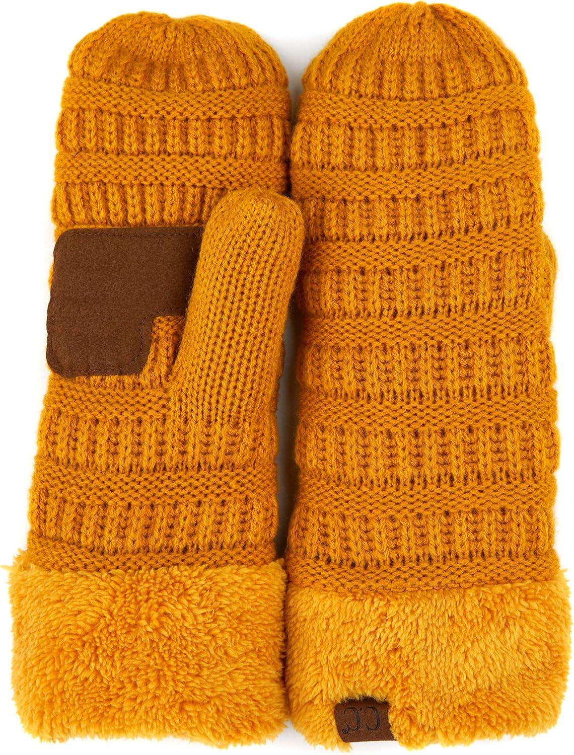 C.C CC Super Thick Fuzzy Fleeced Lined Warm Winter Knitted Mittens Gloves(Solid Mustard)