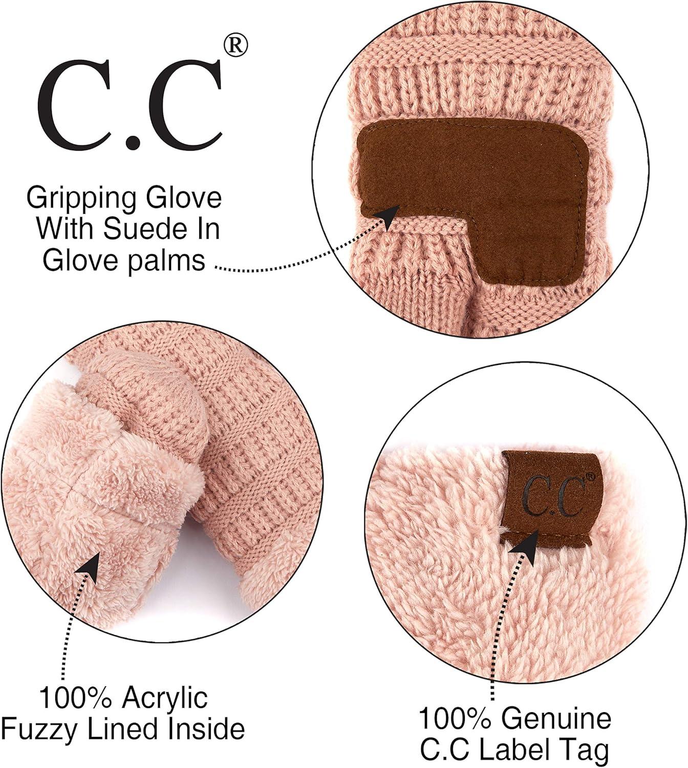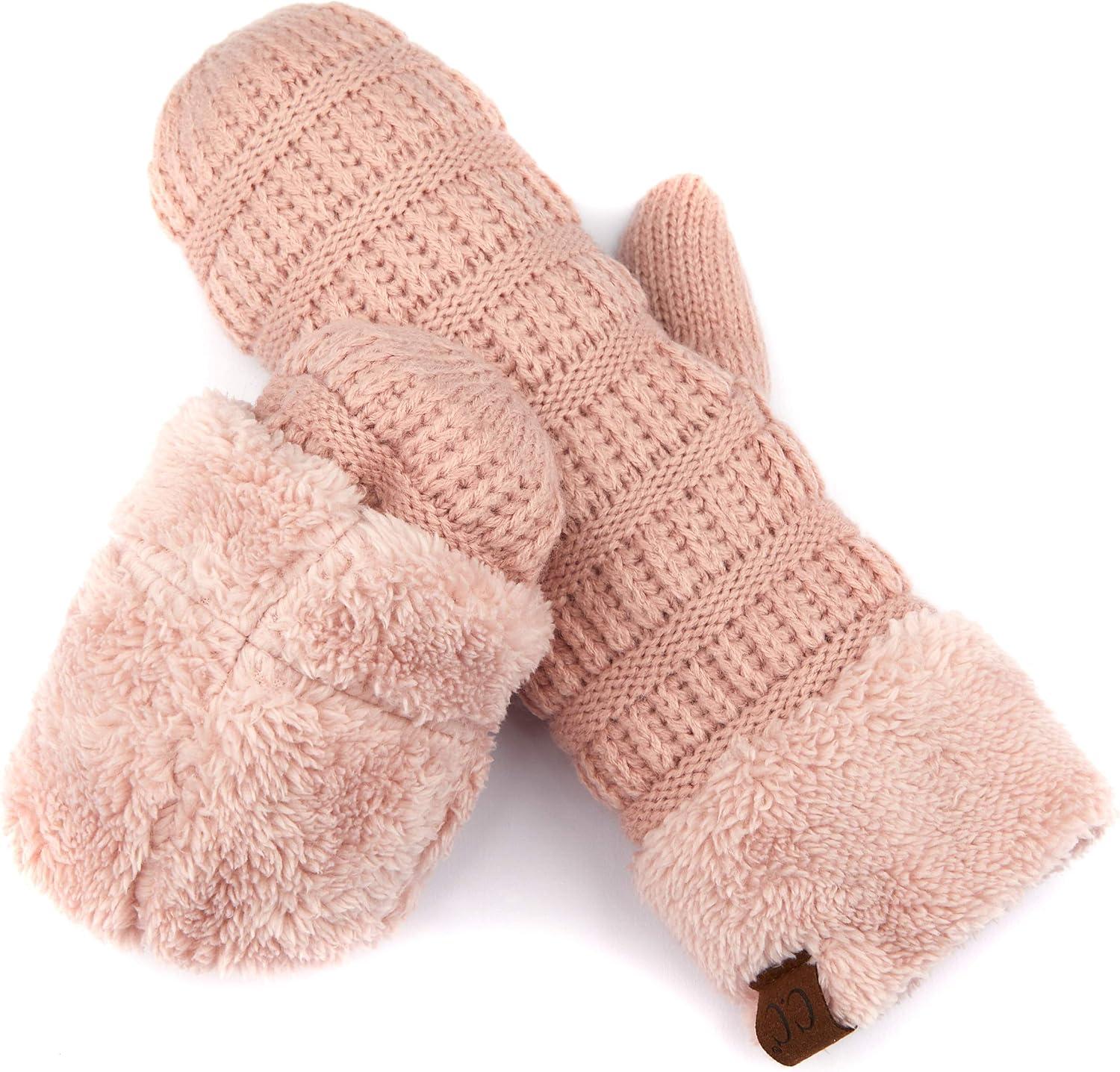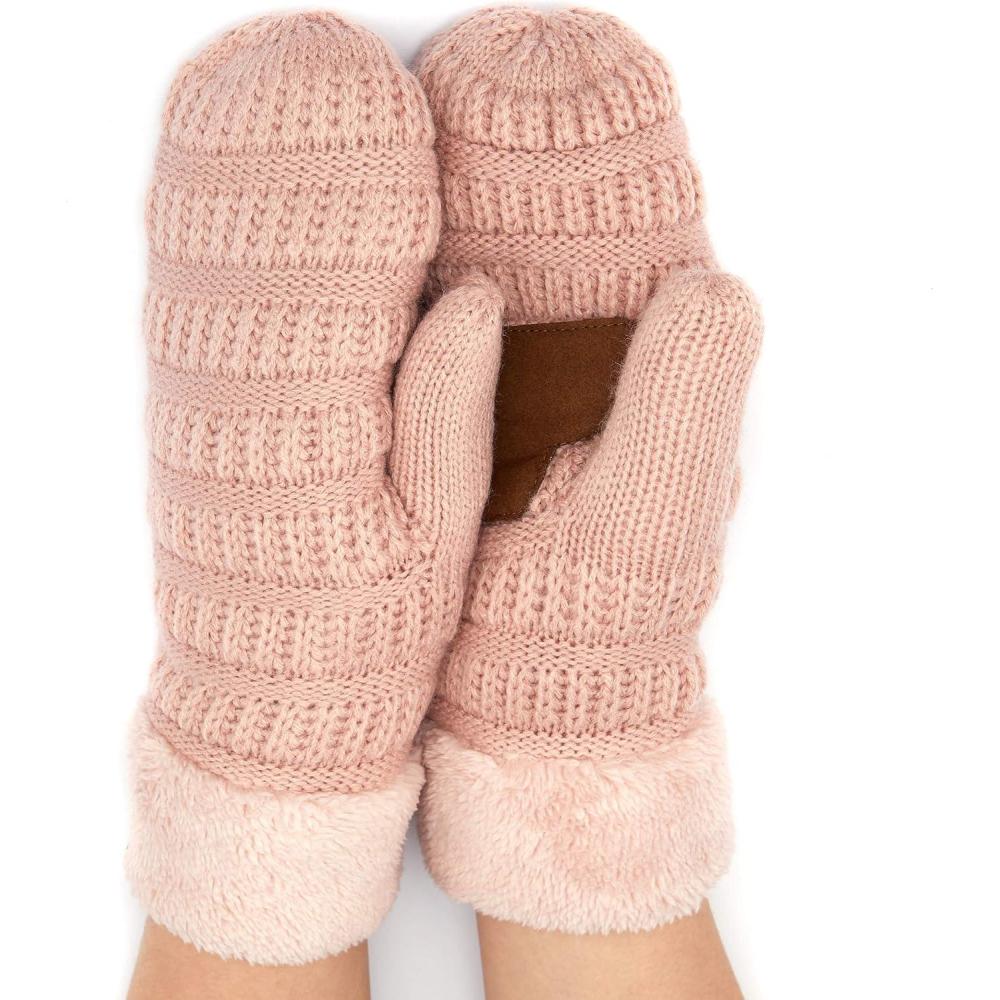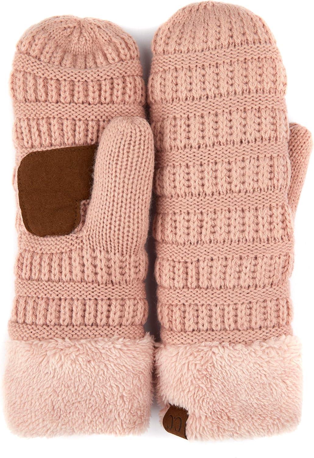 C.C CC Super Thick Fuzzy Fleeced Lined Warm Winter Knitted Mittens Gloves(Solid Rose)