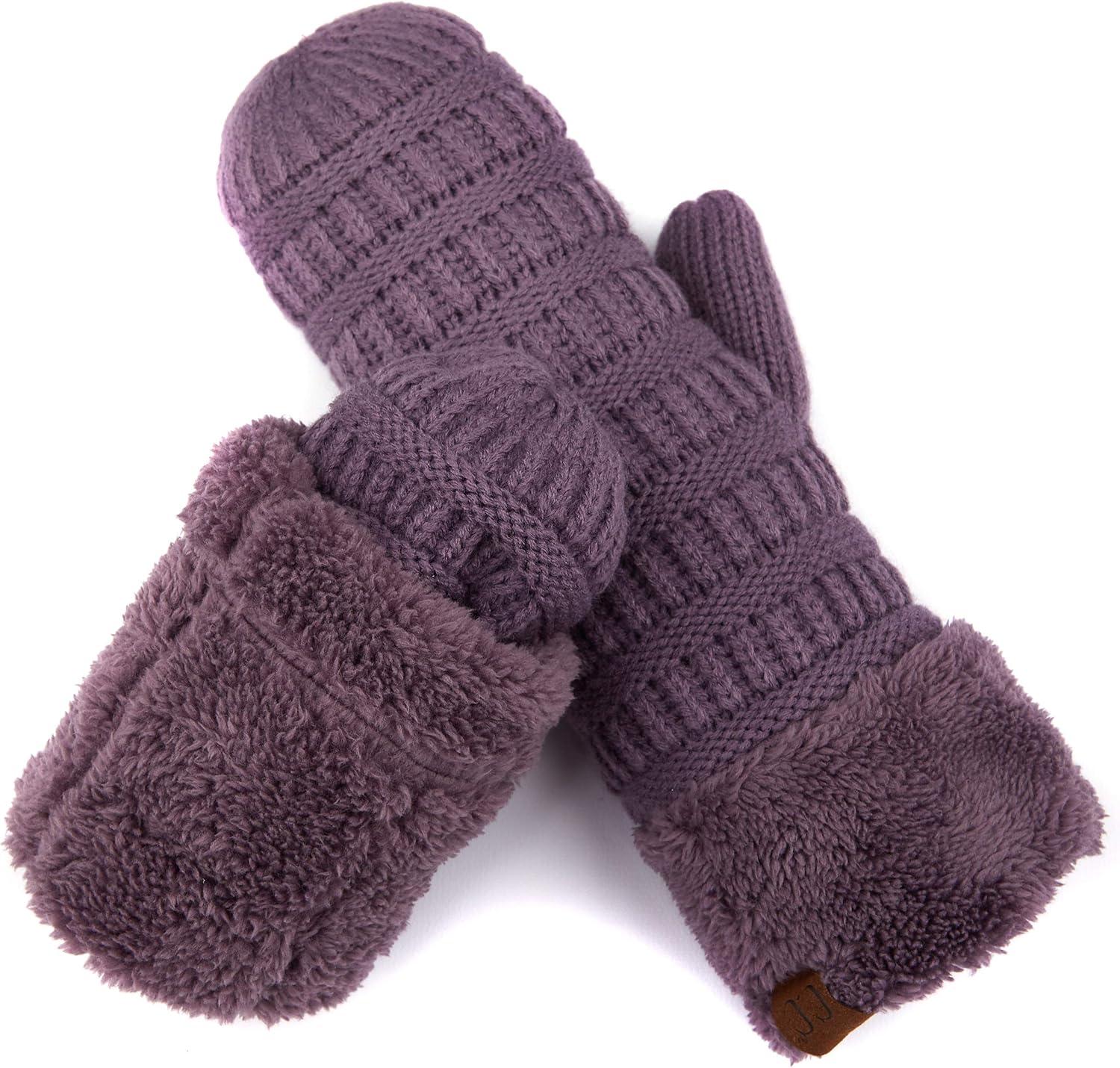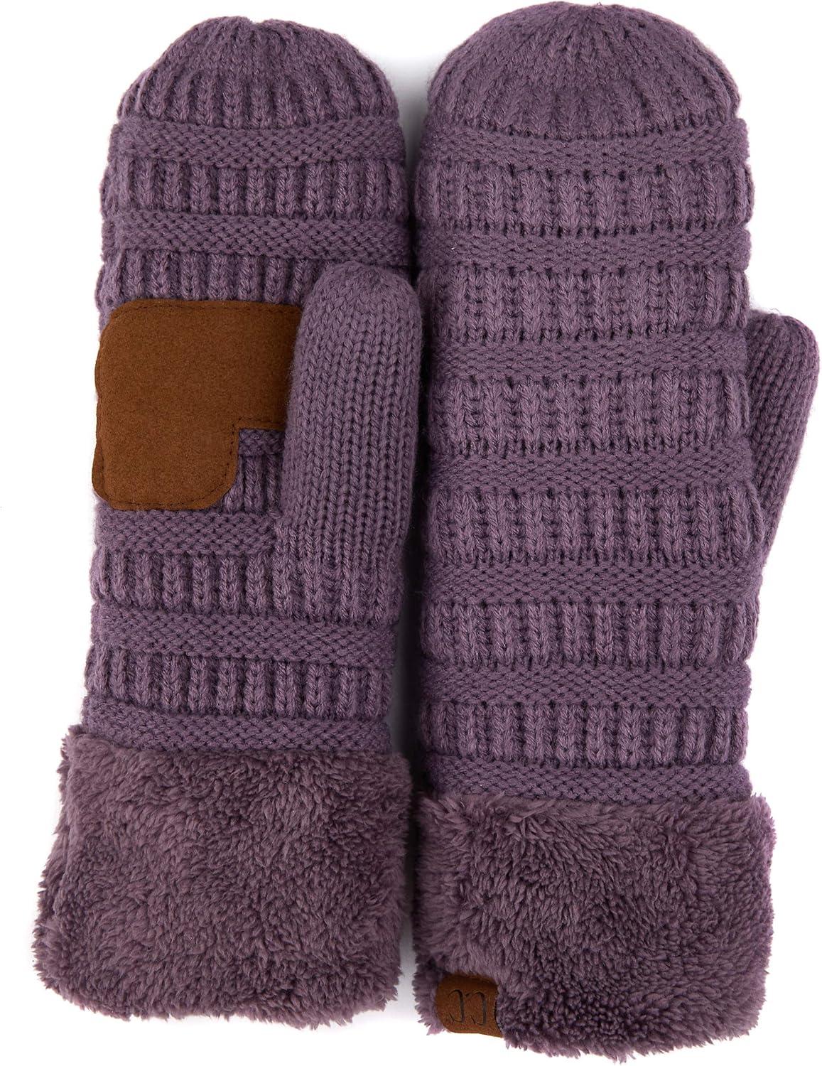 C.C CC Super Thick Fuzzy Fleeced Lined Warm Winter Knitted Mittens Gloves(Solid Violet)