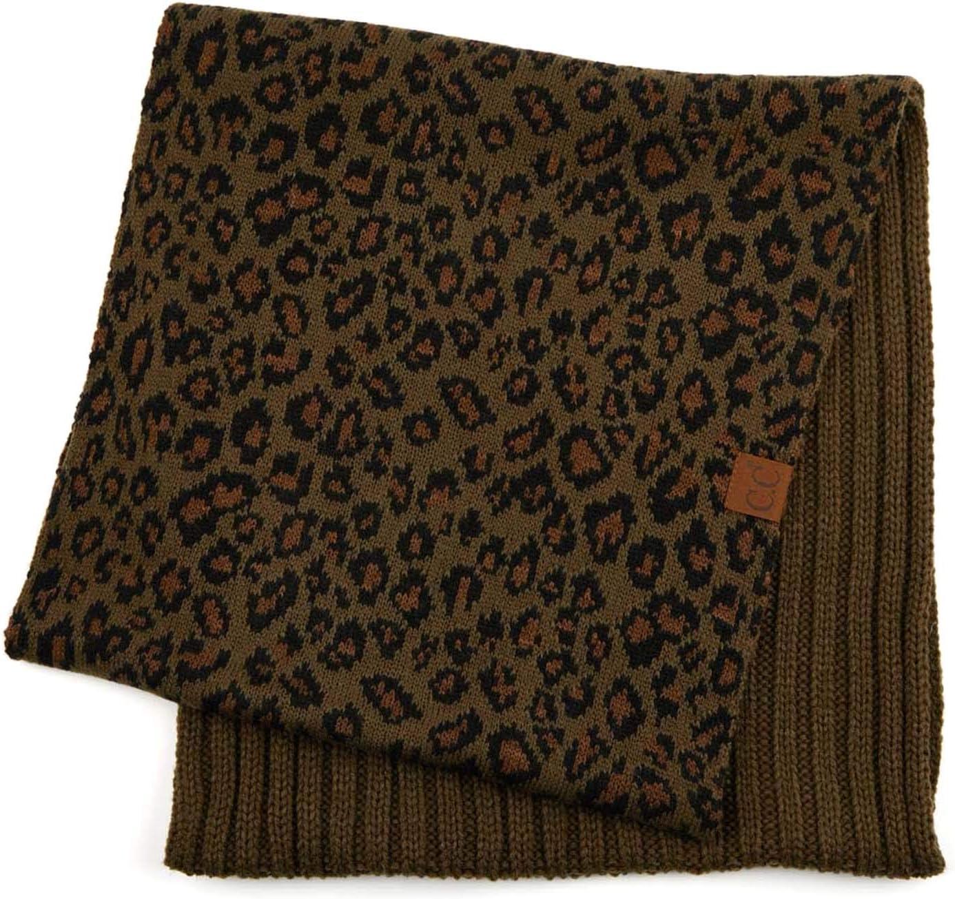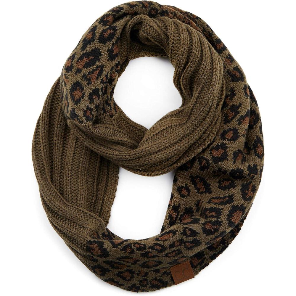 C.C CC Winter Soft Matching Unisex Chunky Knit Cowl Loop Infinity Scarf(1 Leopard/New Olive)
