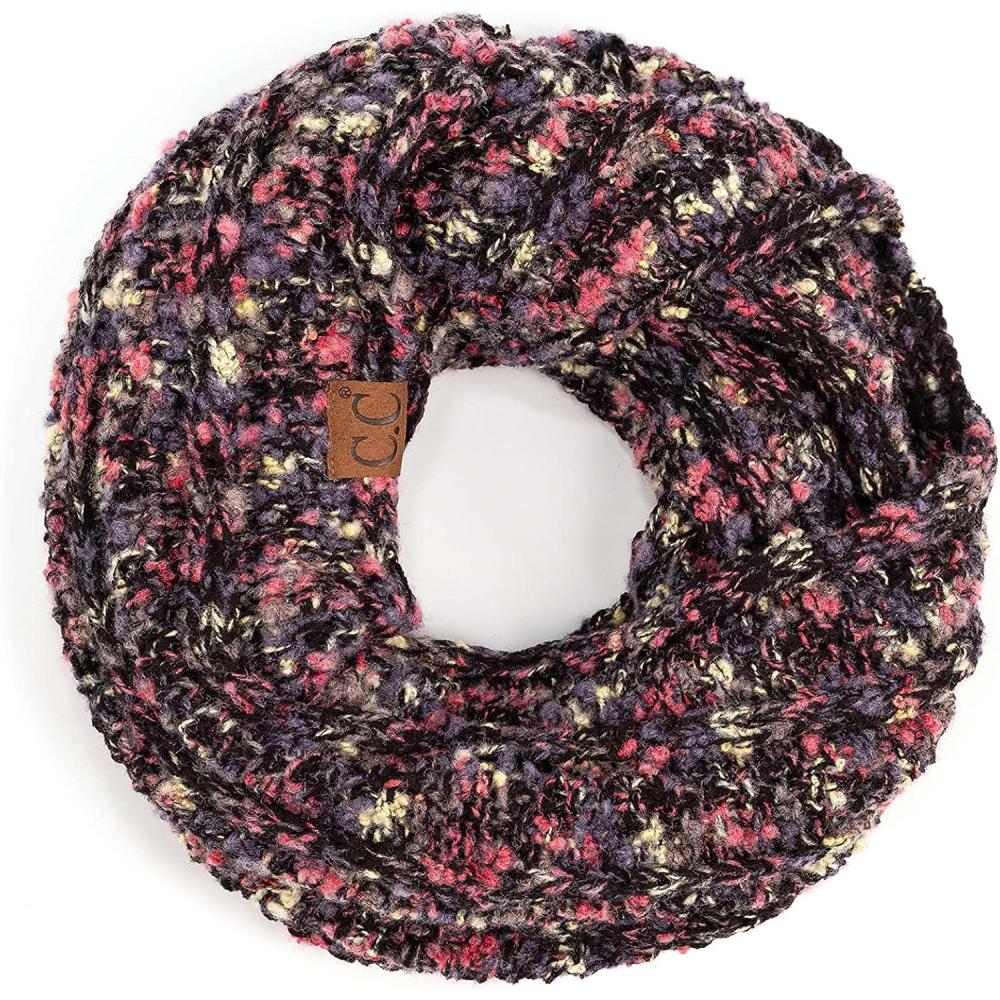 C.C CC Winter Soft Matching Unisex Chunky Knit Cowl Loop Infinity Scarf(Black-multi)