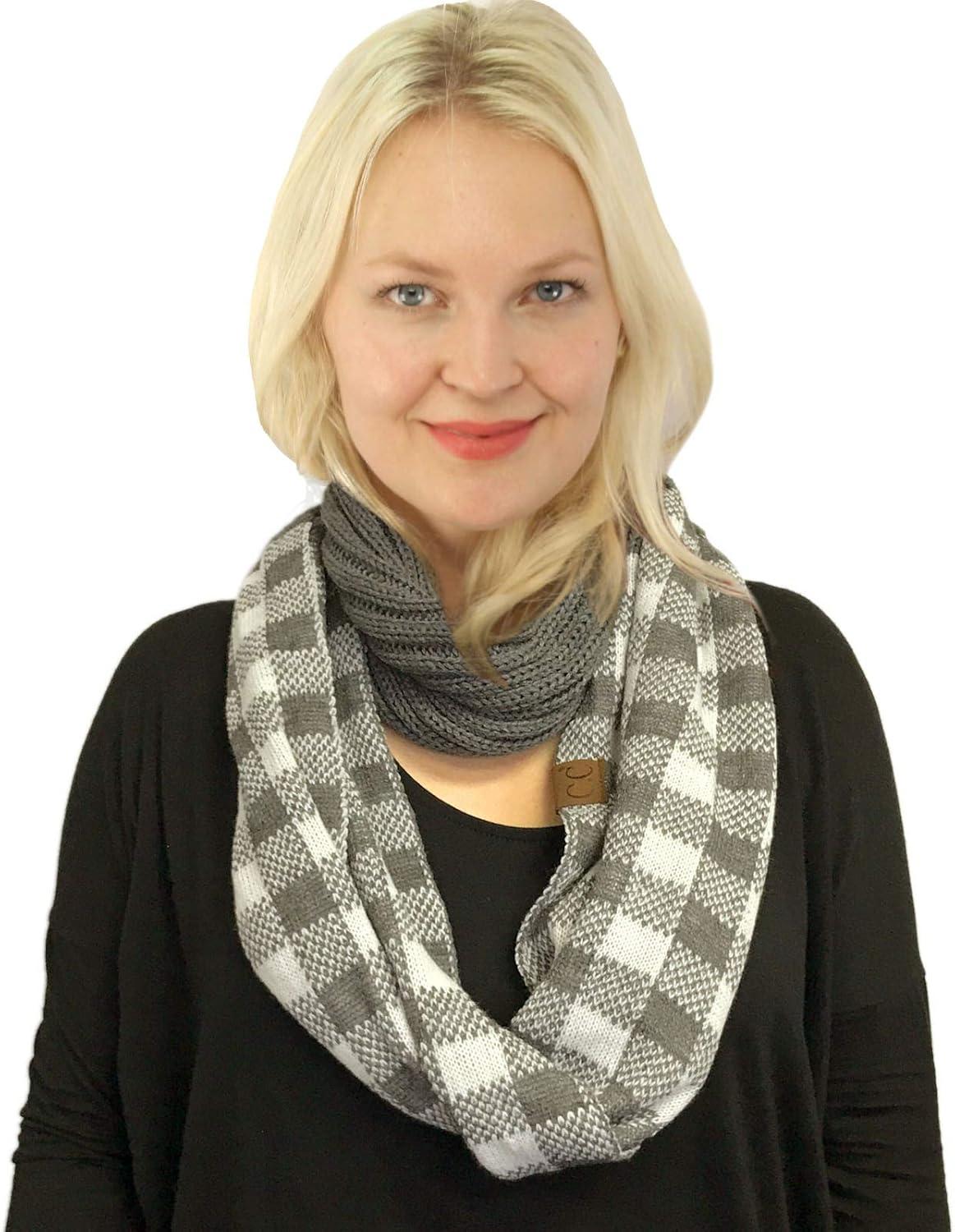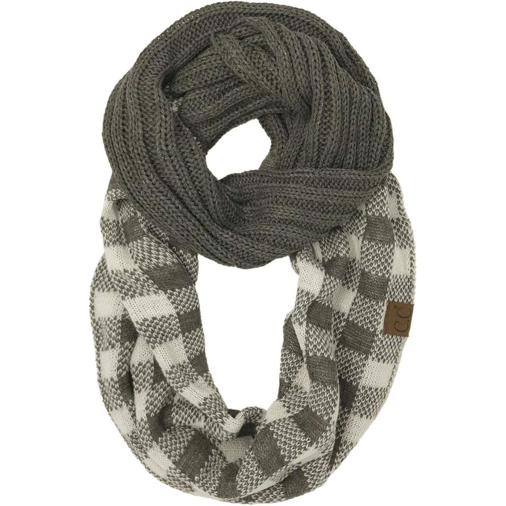 imageCC CC Winter Soft Matching Unisex Chunky Knit Cowl Loop Infinity ScarfBuffalo Plaid WhiteLt Melange Gray