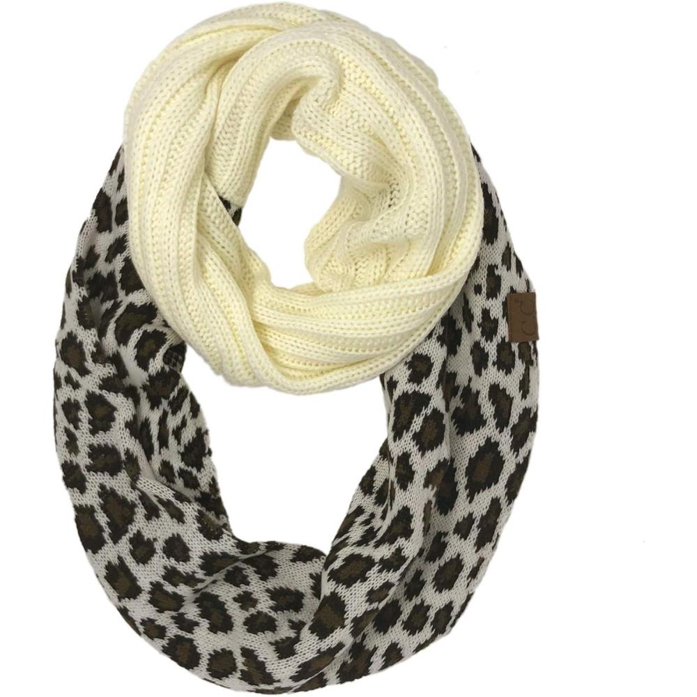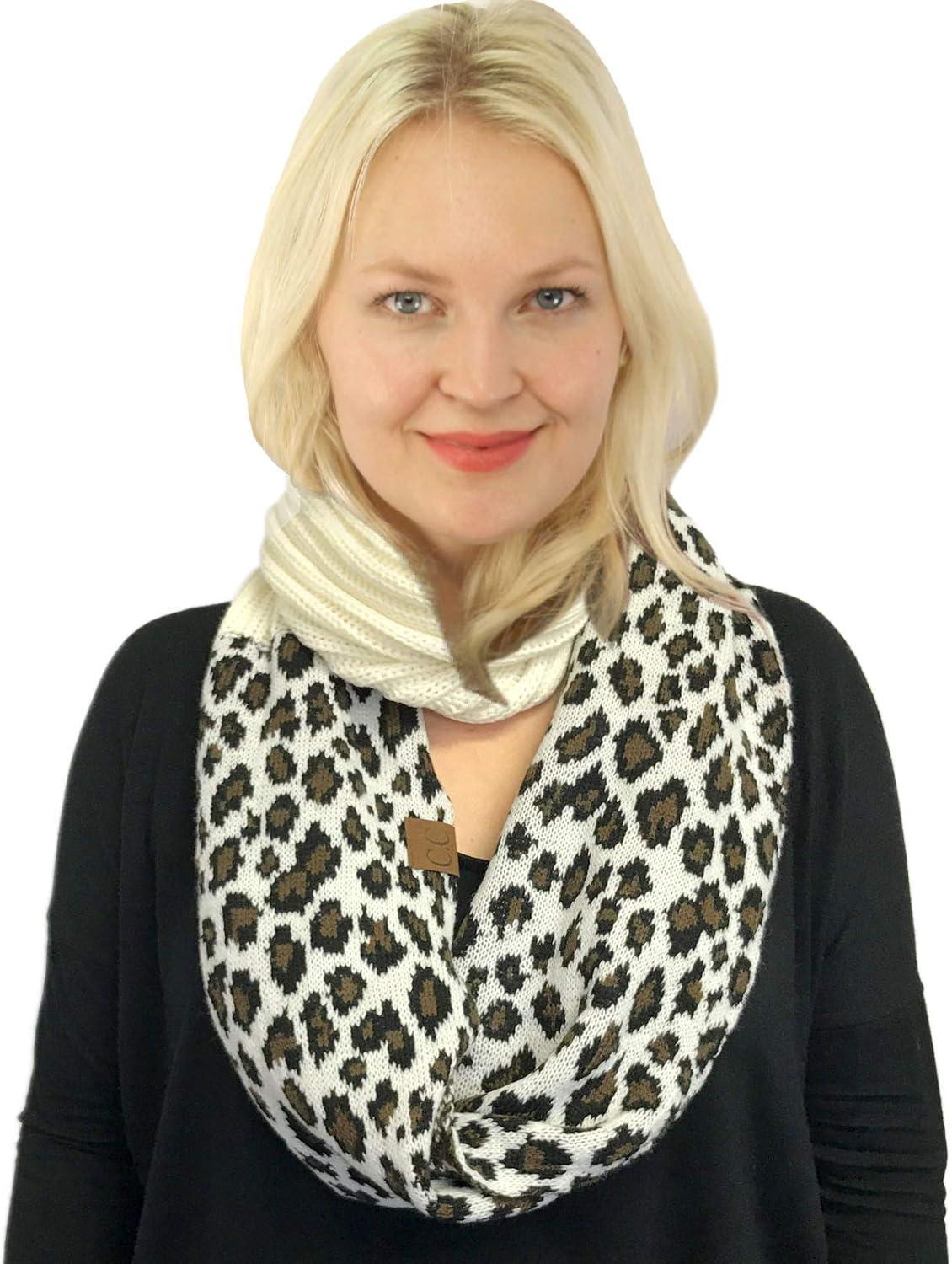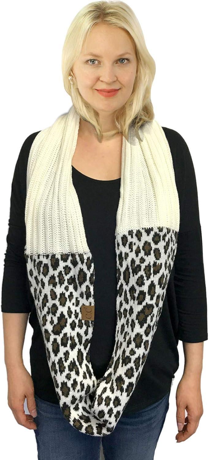 C.C CC Winter Soft Matching Unisex Chunky Knit Cowl Loop Infinity Scarf(Leopard Ivory)