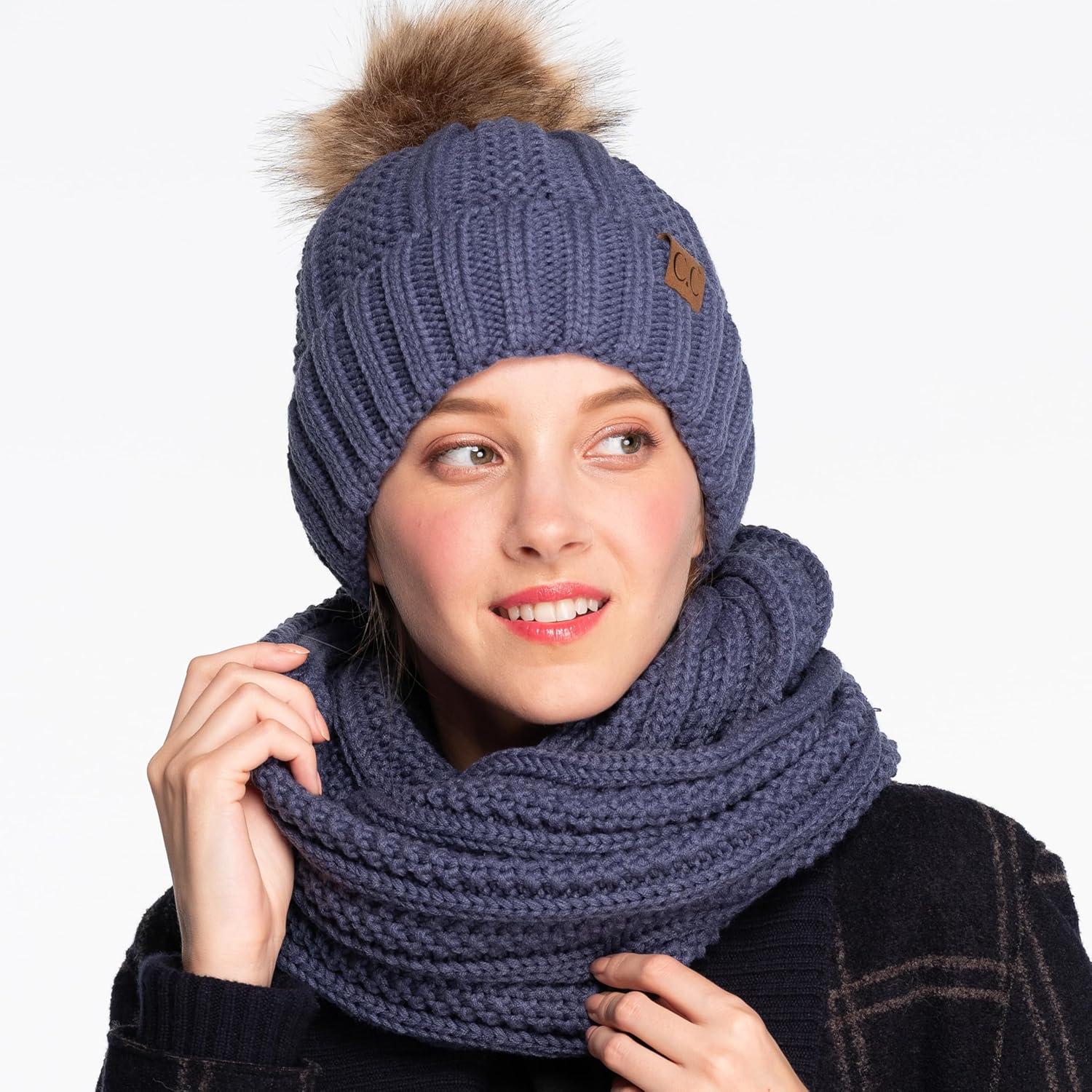 C.C CC Winter Soft Matching Unisex Chunky Knit Cowl Loop Infinity Scarf(Ribbed Solid Purple)