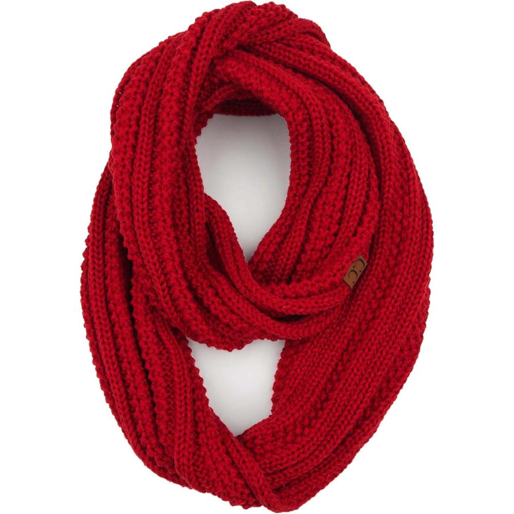 C.C CC Winter Soft Matching Unisex Chunky Knit Cowl Loop Infinity Scarf(Ribbed Solid Red)