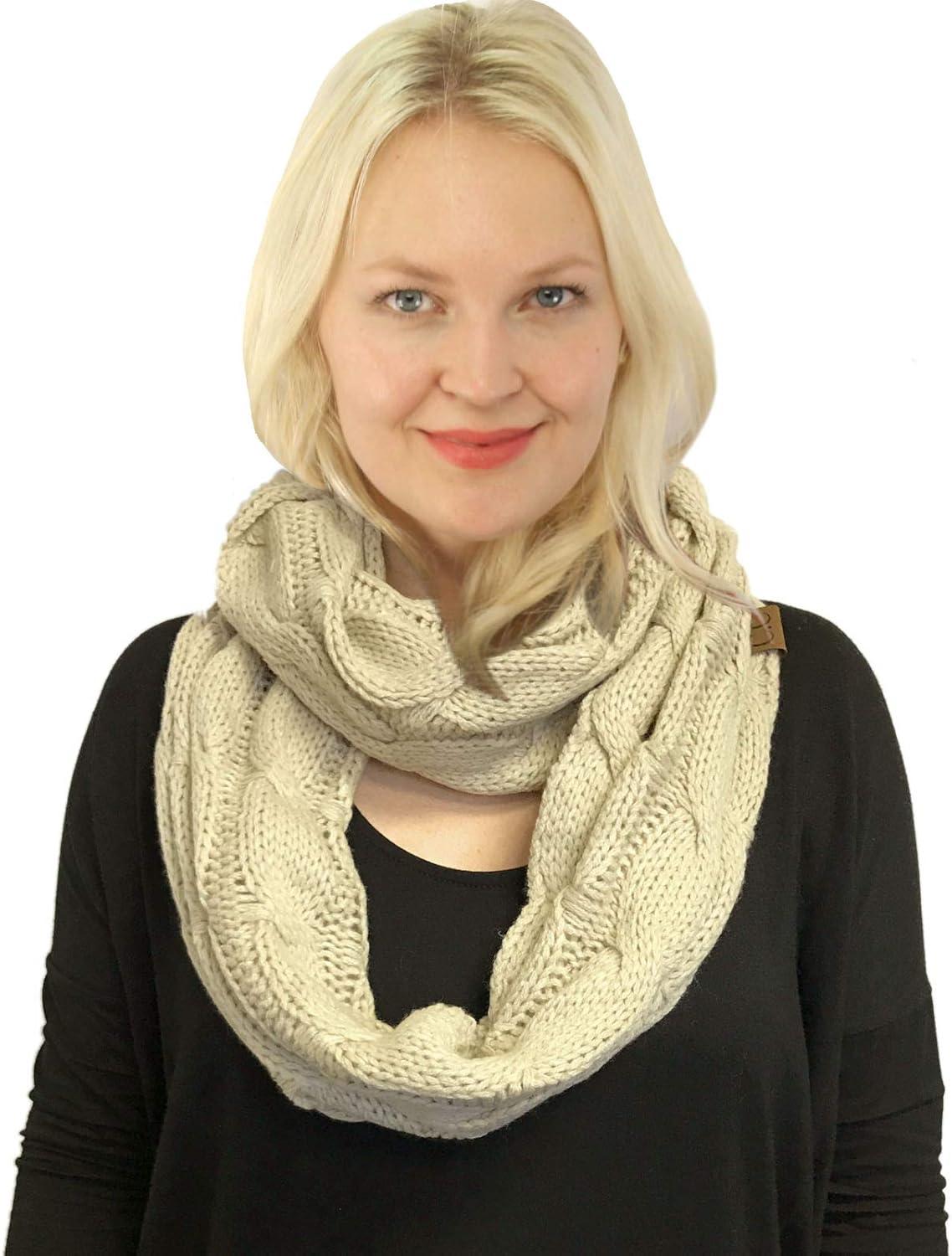 C.C CC Winter Soft Matching Unisex Chunky Knit Cowl Loop Infinity Scarf(Solid Beige)