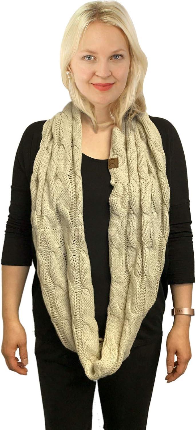 imageCC CC Winter Soft Matching Unisex Chunky Knit Cowl Loop Infinity ScarfSolid Beige