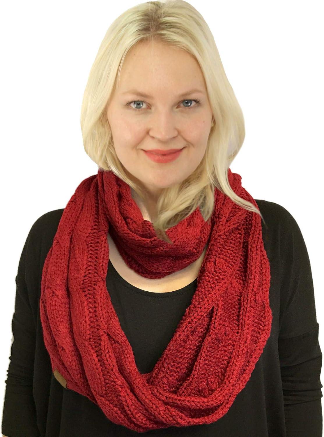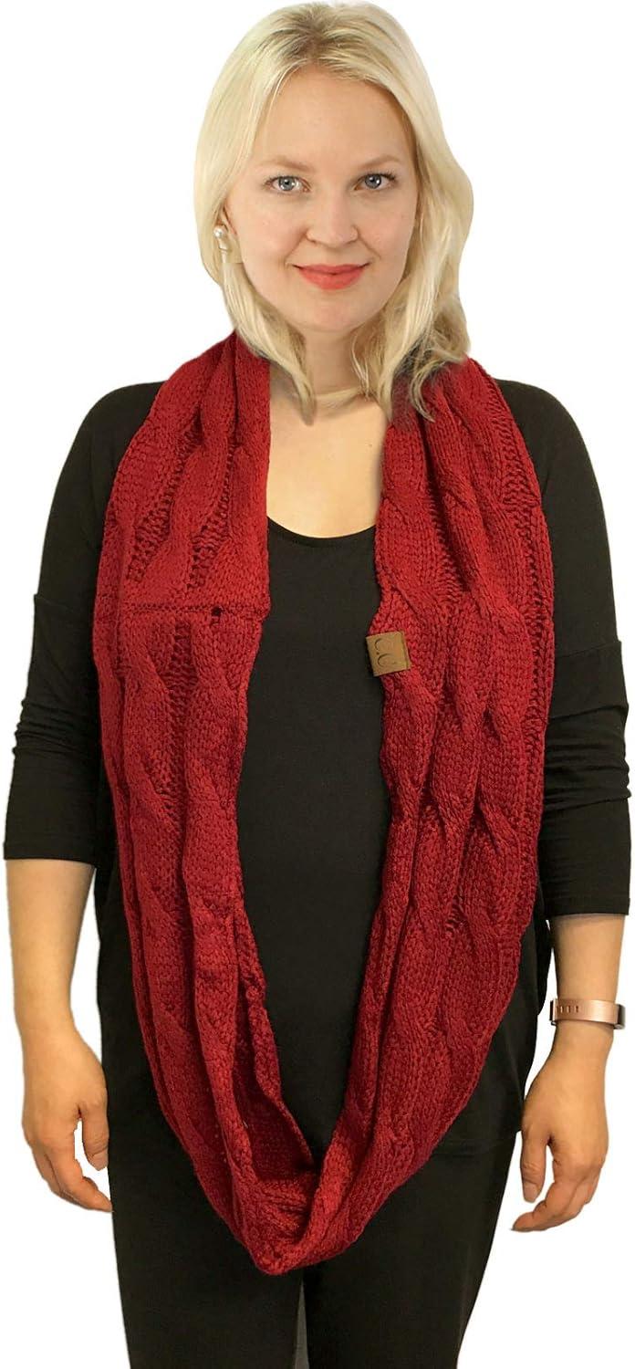 C.C CC Winter Soft Matching Unisex Chunky Knit Cowl Loop Infinity Scarf(Solid Burgundy)