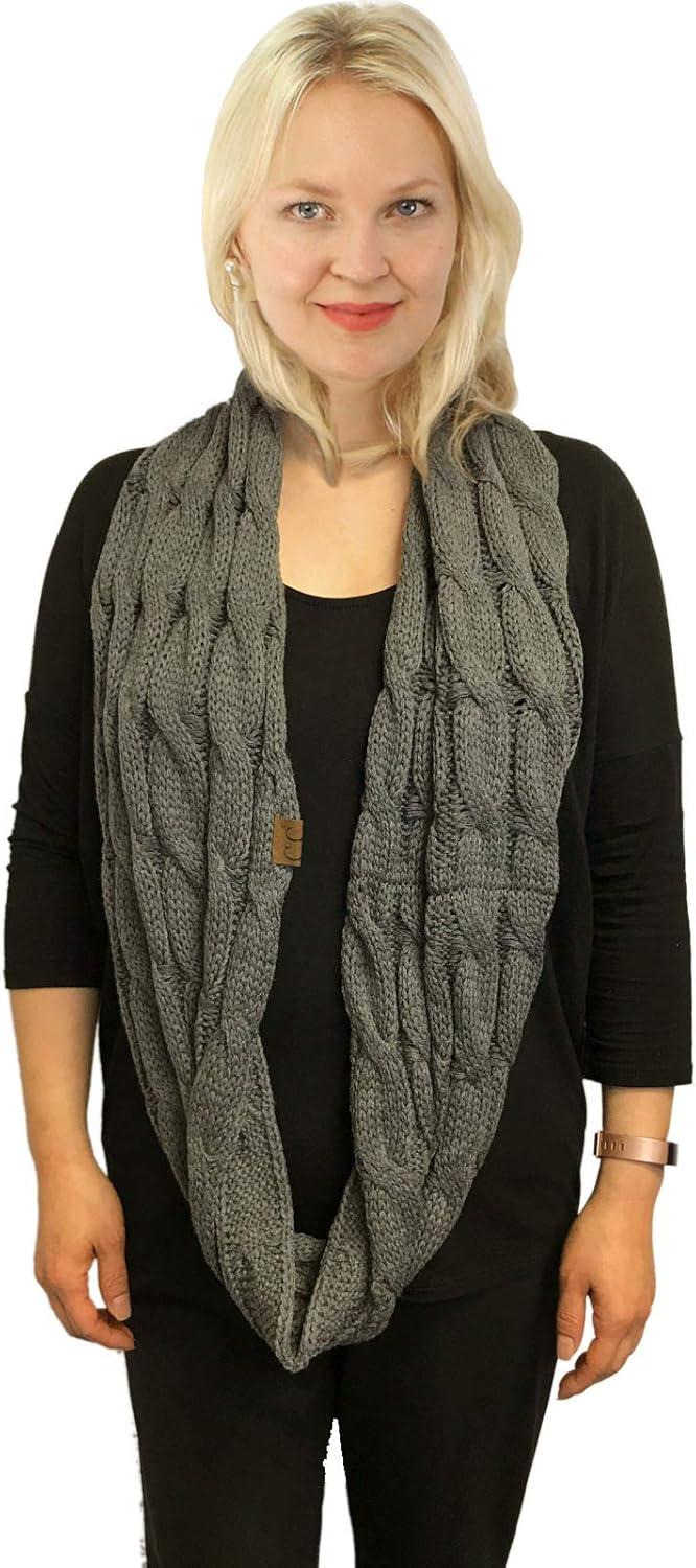 C.C CC Winter Soft Matching Unisex Chunky Knit Cowl Loop Infinity Scarf(Solid Dk. Melange Gray)