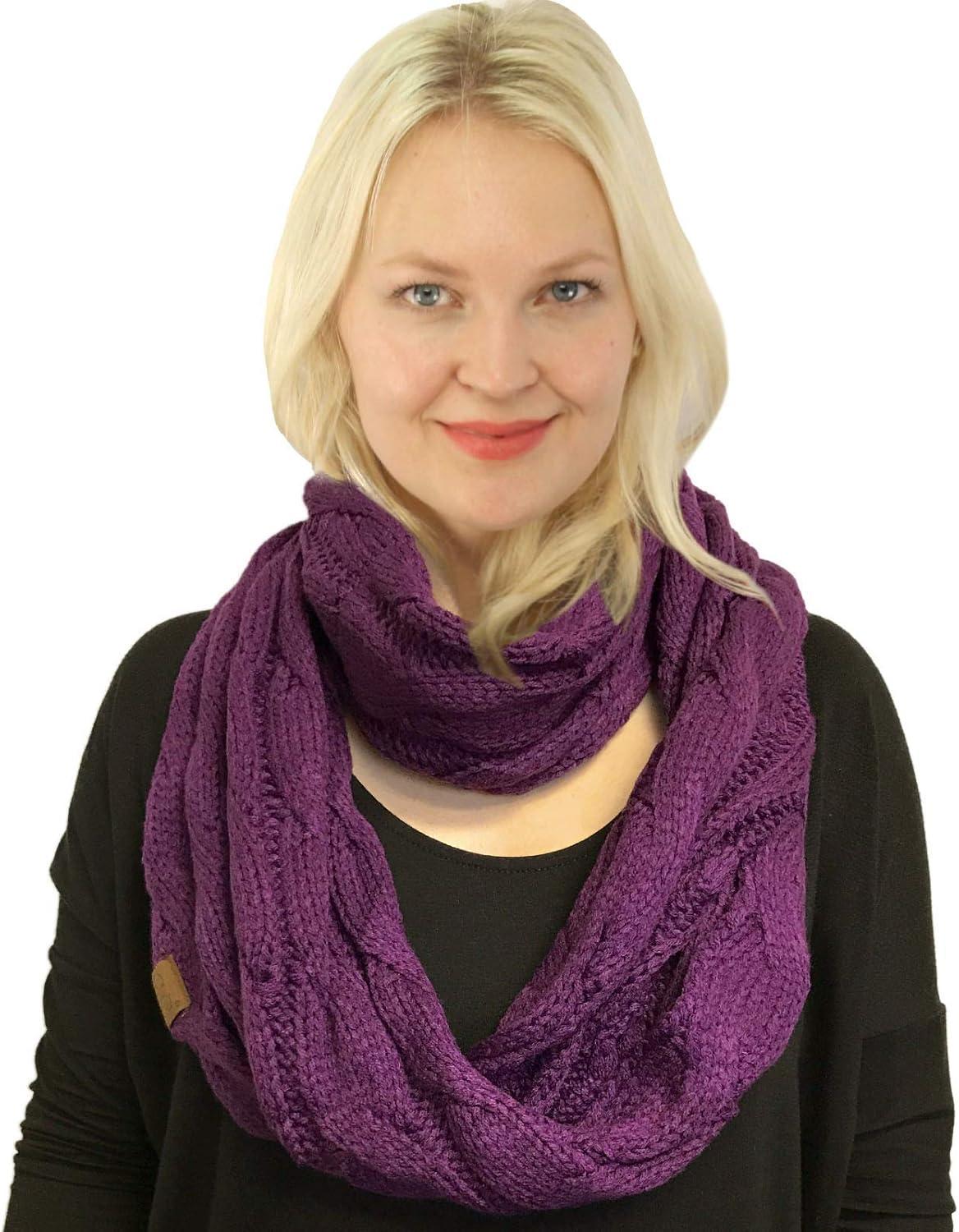 C.C CC Winter Soft Matching Unisex Chunky Knit Cowl Loop Infinity Scarf(Solid Dk. Purple)