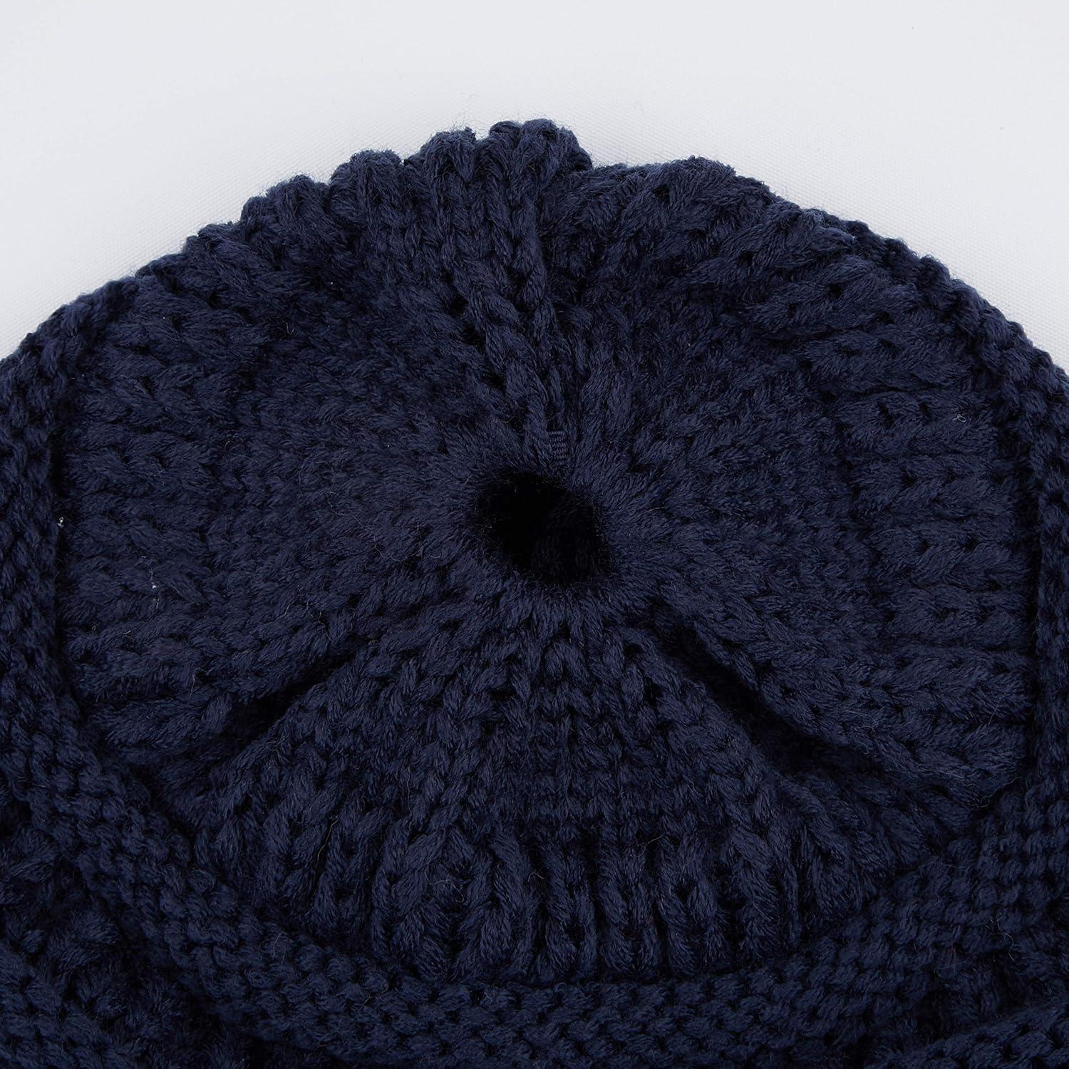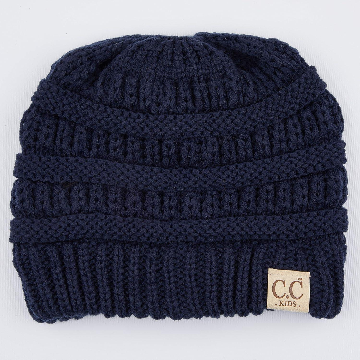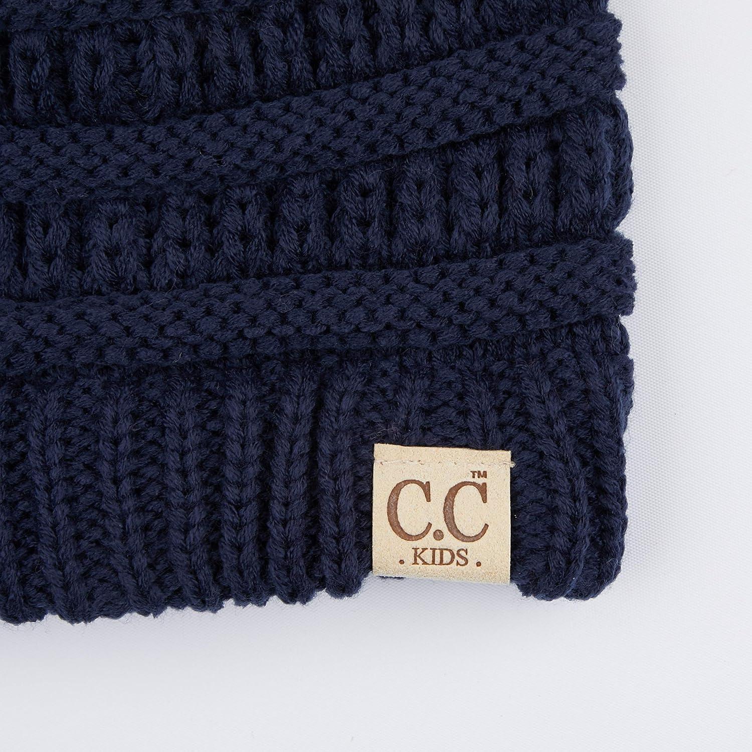 C.C Children Kids Beanie Chunky Knitted Beanie Pony Tail Hat for Kid Ages 2-5 (MB-847) (MB-816)(Navy)