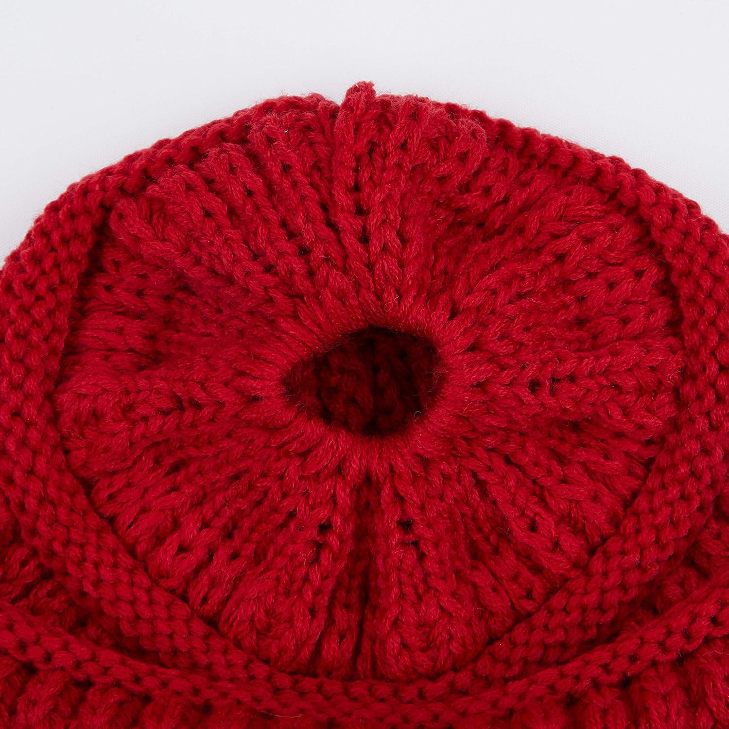 C.C Children Kids Beanie Chunky Knitted Beanie Pony Tail Hat for Kid Ages 2-5 (MB-847) (MB-816)(Red)