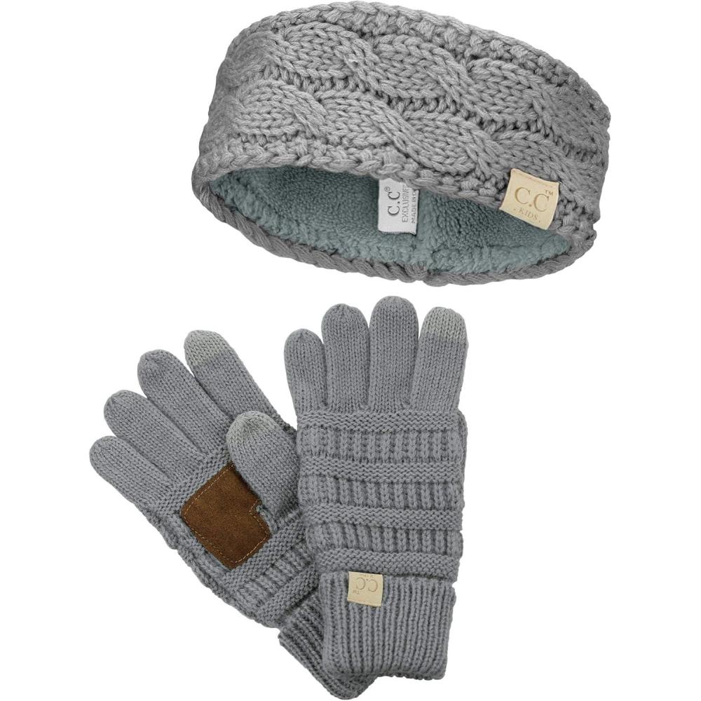 imageCC Childrens Kids Cable Knit Ear Warmer Headband and Touchscreen Gloves SetLight Melange Gray