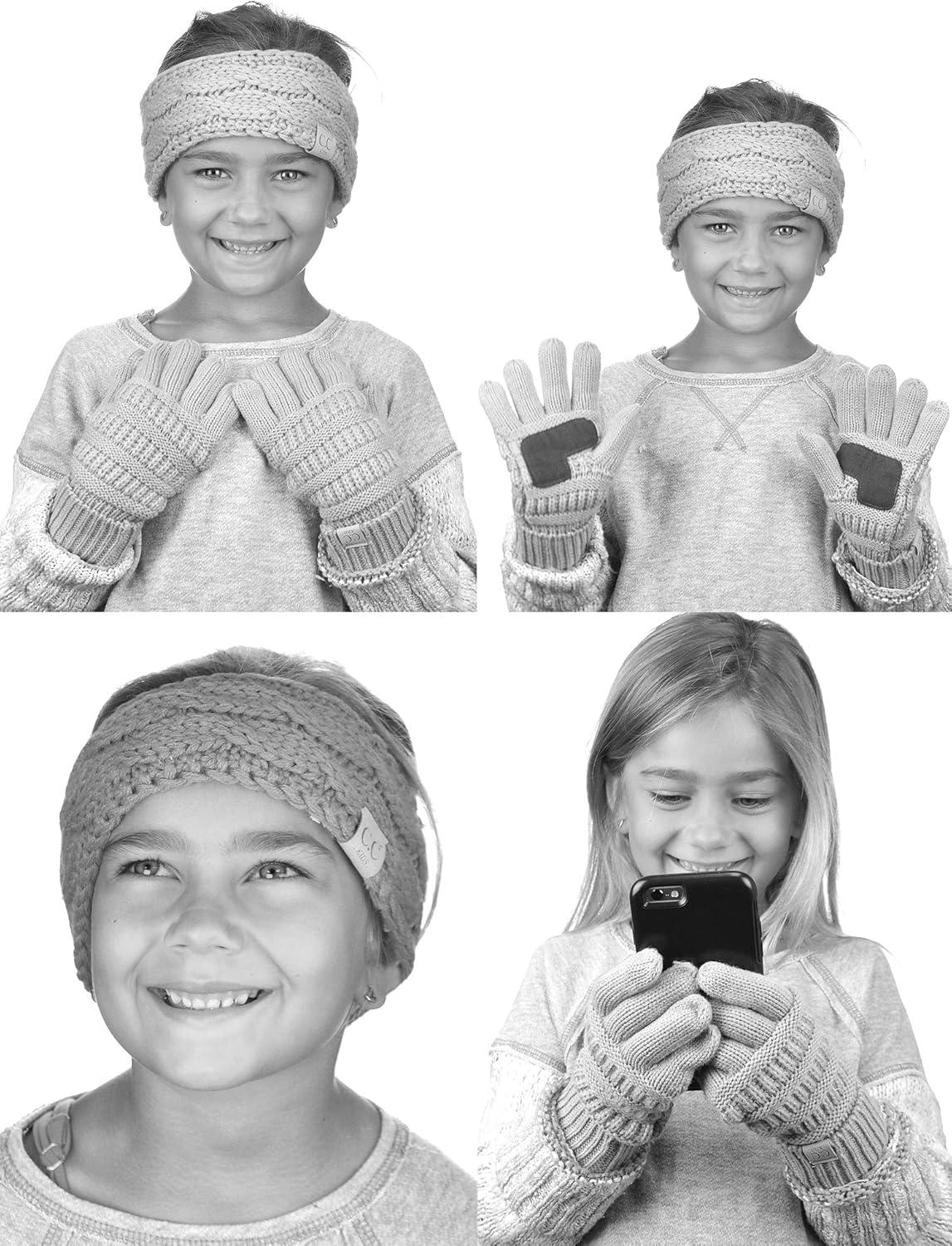 C.C Children’s Kids’ Cable Knit Ear Warmer Headband and Touchscreen Gloves Set(Violet)