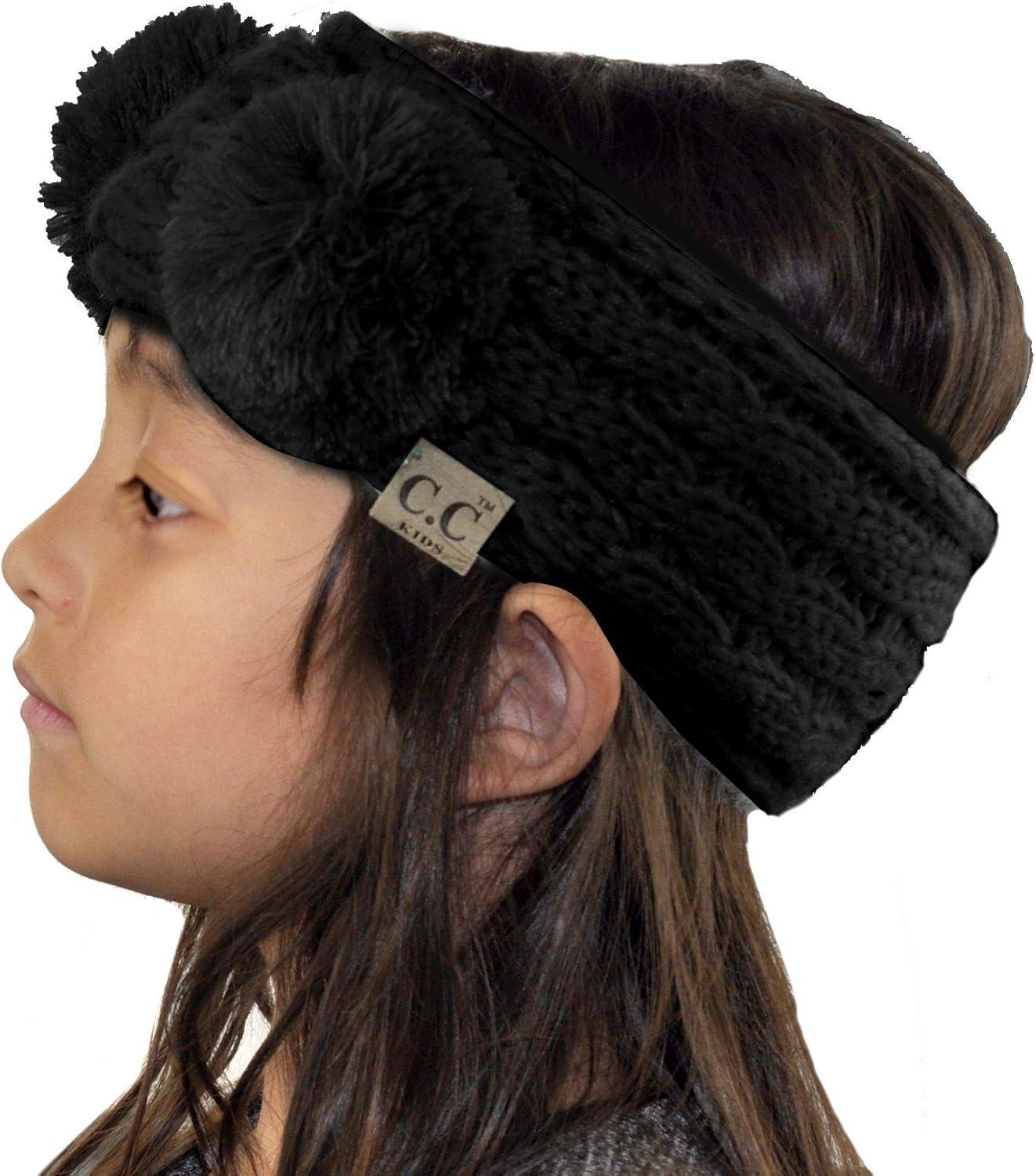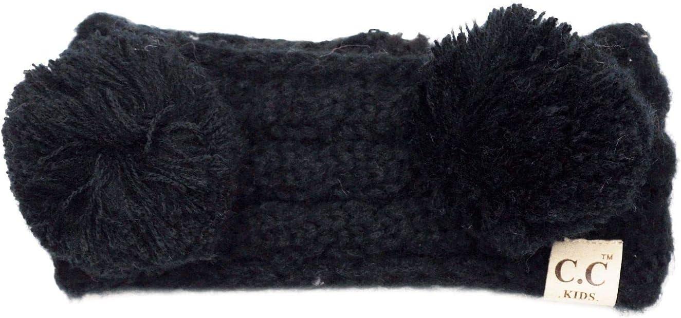 C.C Children’s Kids’ Double Pom Cable Knit Fuzzy Lined Ear Warmer Headband(Black)