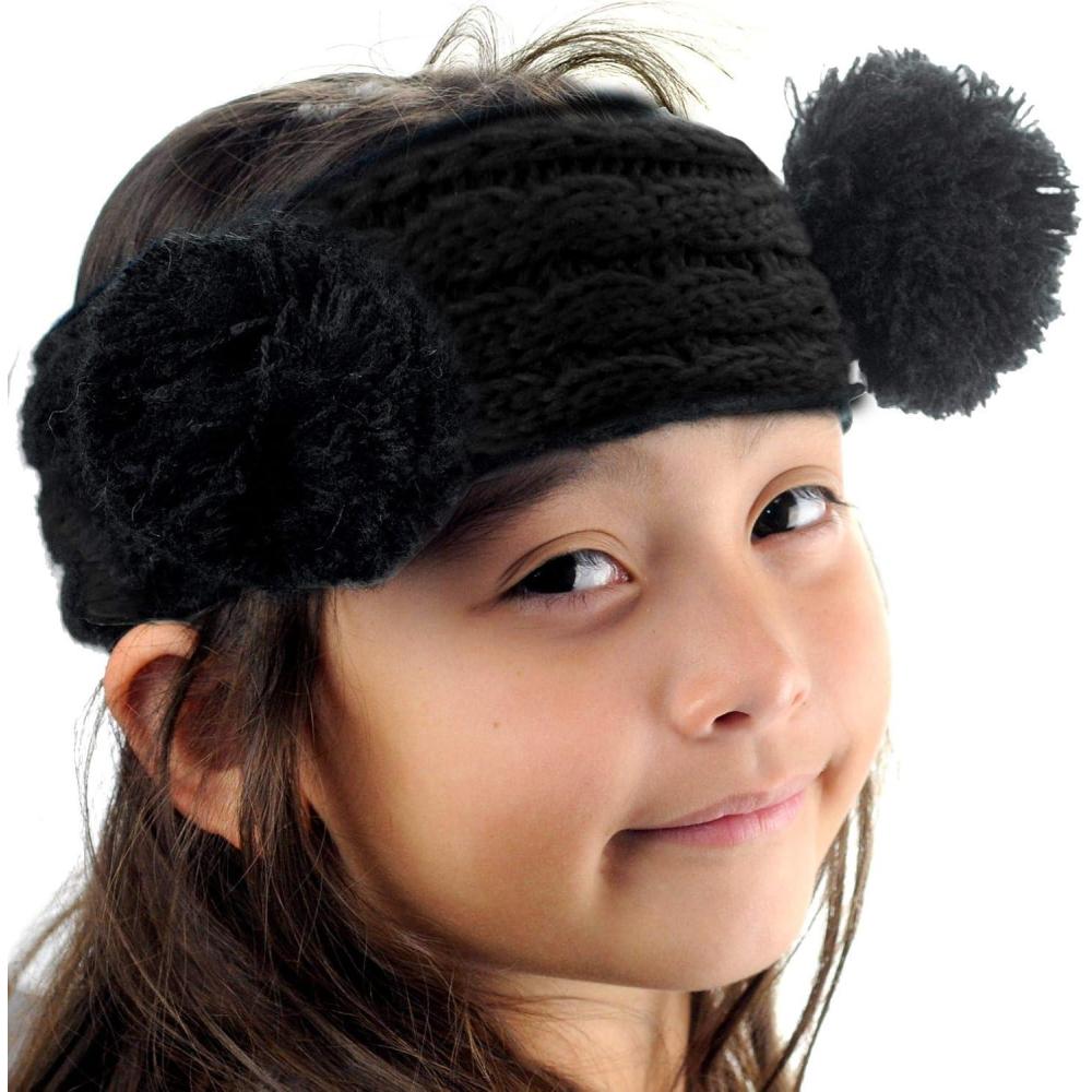 imageCC Childrens Kids Double Pom Cable Knit Fuzzy Lined Ear Warmer HeadbandBlack