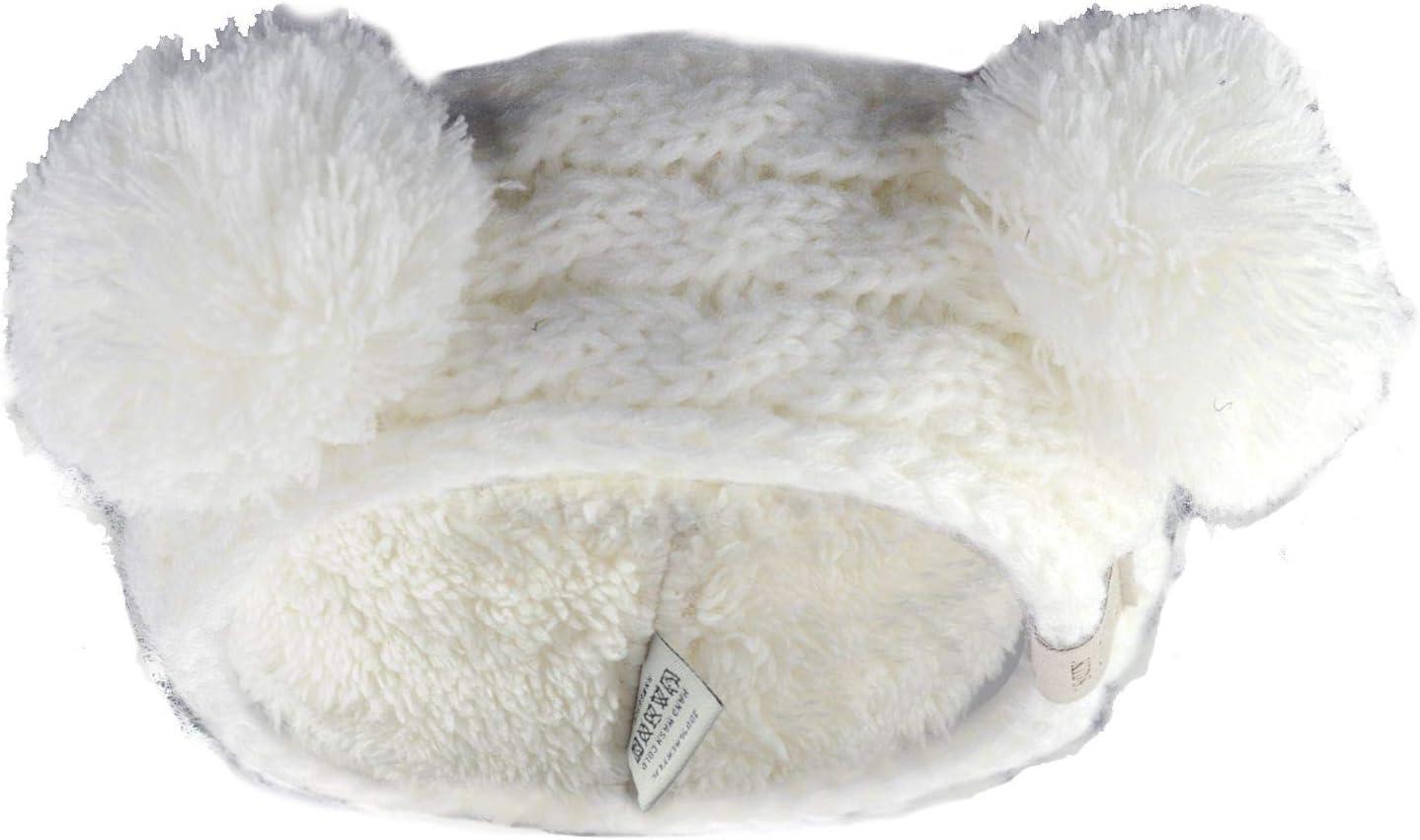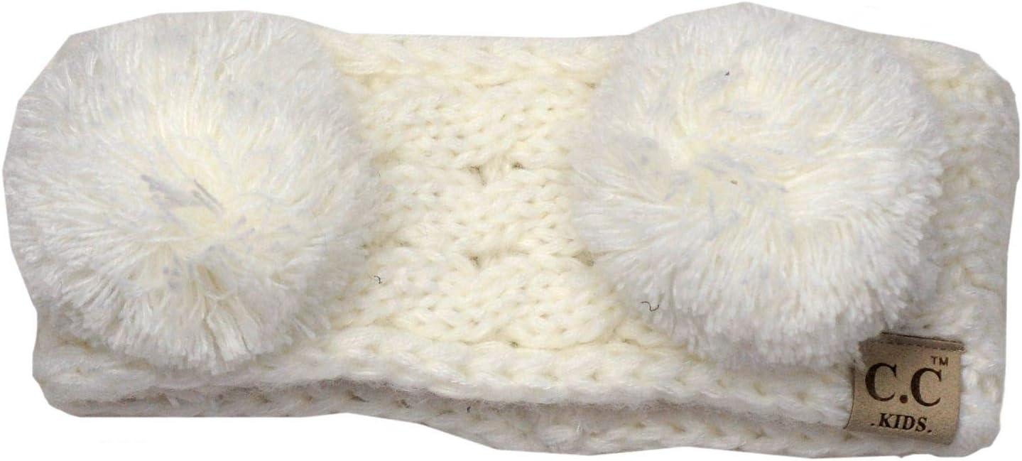C.C Children’s Kids’ Double Pom Cable Knit Fuzzy Lined Ear Warmer Headband(Ivory)