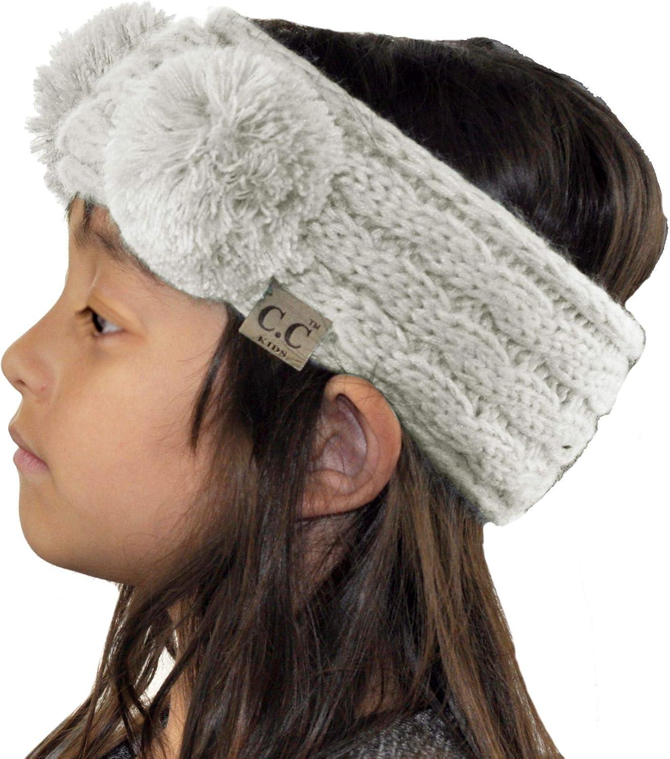C.C Children’s Kids’ Double Pom Cable Knit Fuzzy Lined Ear Warmer Headband(Light Melange Gray)