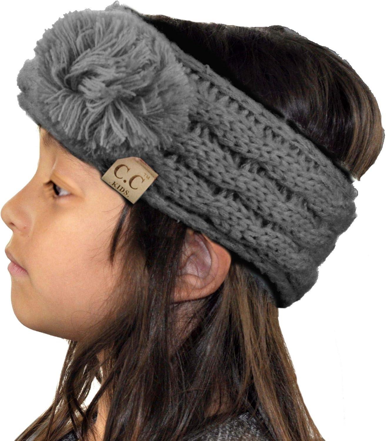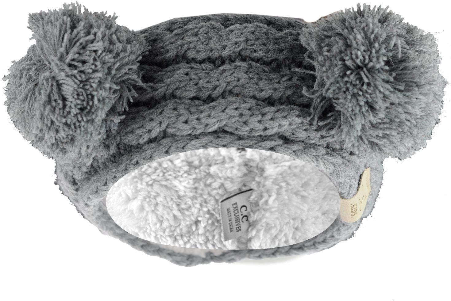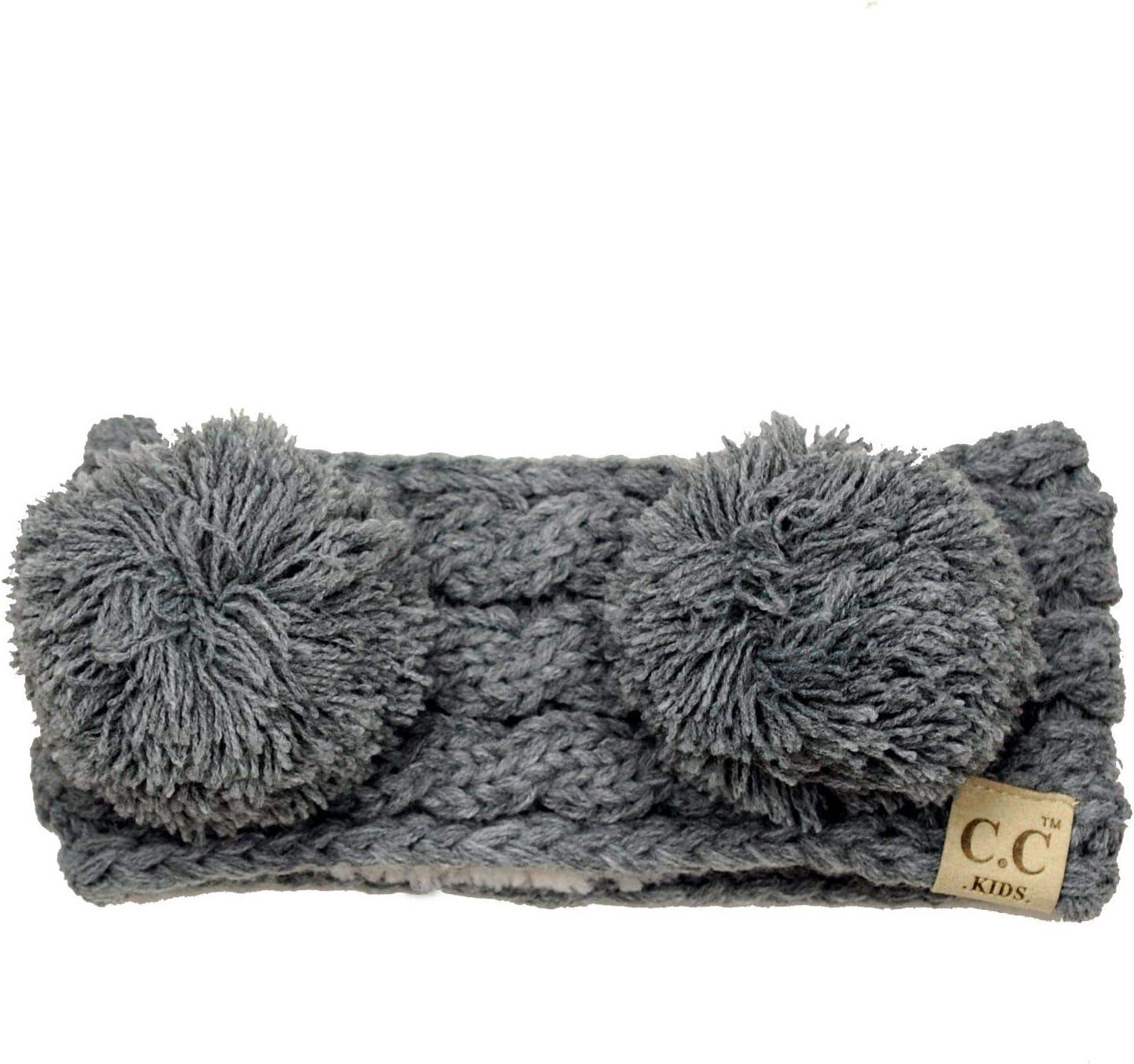 C.C Children’s Kids’ Double Pom Cable Knit Fuzzy Lined Ear Warmer Headband(Light Melange Gray)