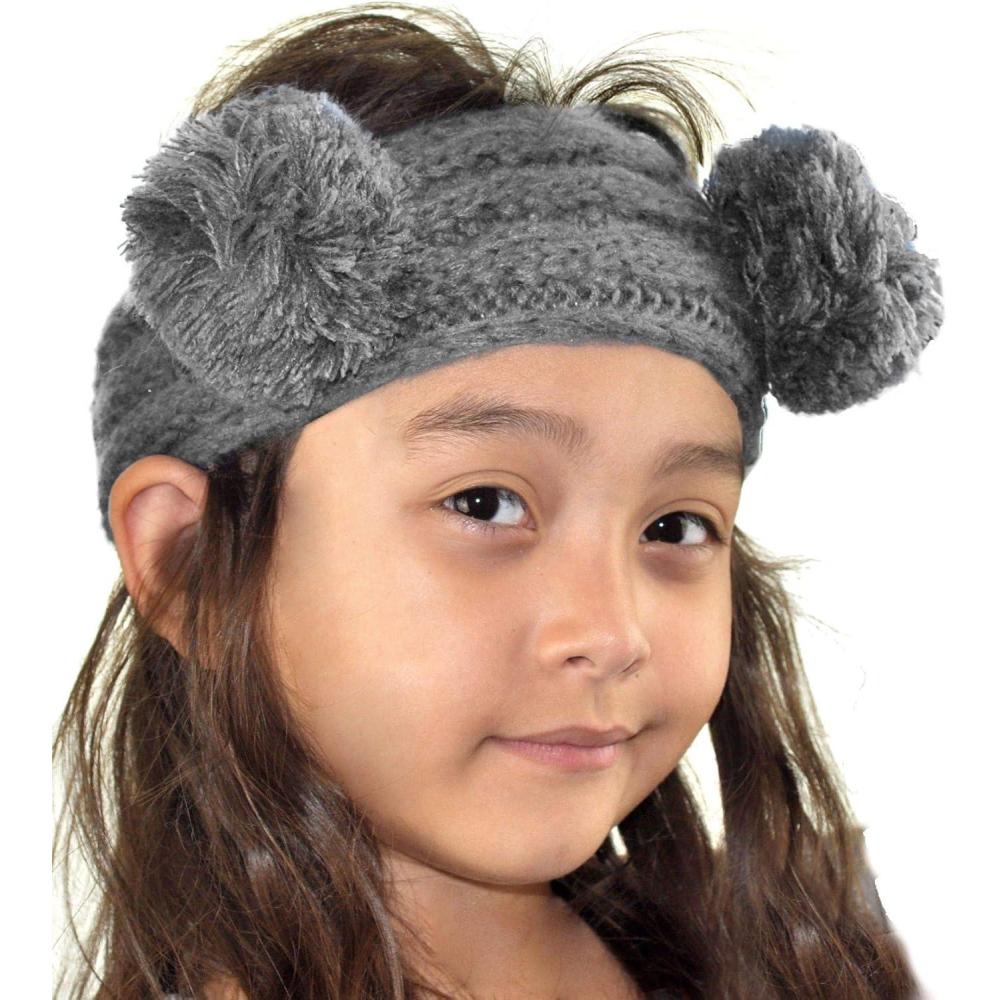 imageCC Childrens Kids Double Pom Cable Knit Fuzzy Lined Ear Warmer HeadbandLight Melange Gray