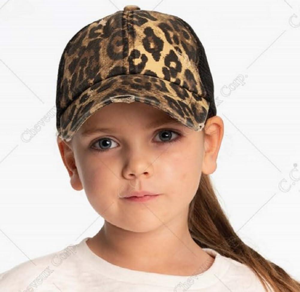 C.C. Childrens’ Kids’ Girls’ Criss Cross High Bun Adjustable Mesh Trucker Baseball Cap(Cotton Twill Denim)