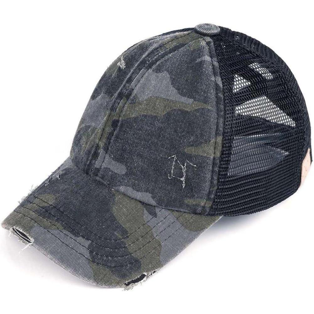 C.C. Childrens’ Kids’ Girls’ Criss Cross High Bun Adjustable Mesh Trucker Baseball Cap(Distressed Camo Black)