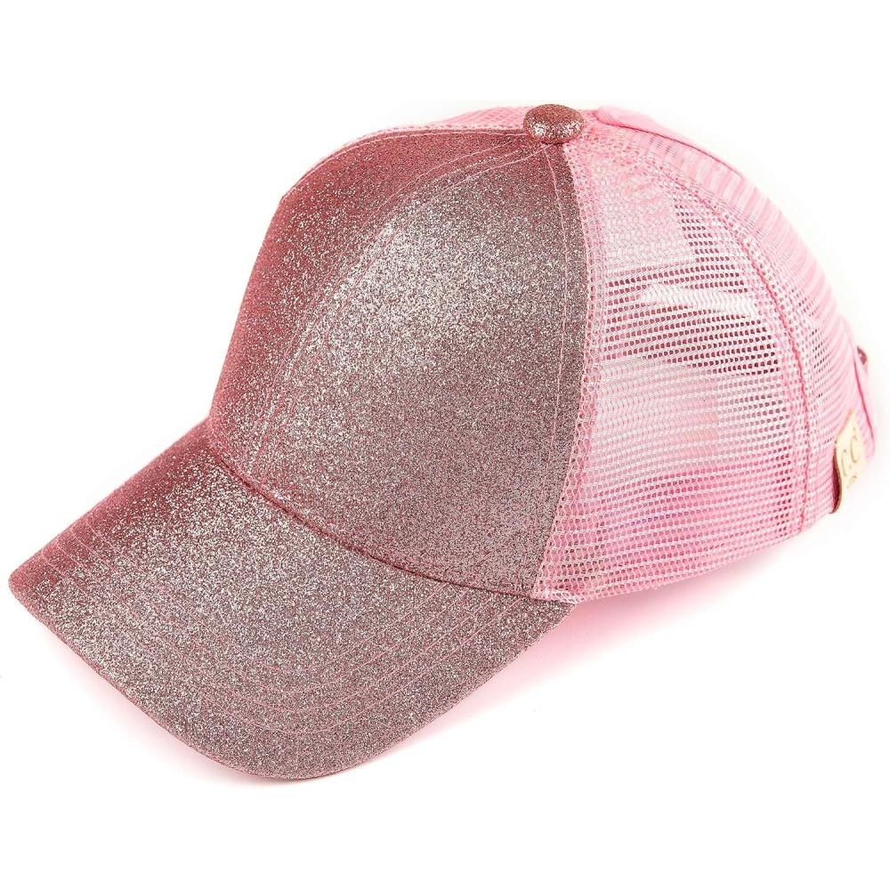 imageCC Childrens Kids Girls Criss Cross High Bun Adjustable Mesh Trucker Baseball CapGlitter Pink