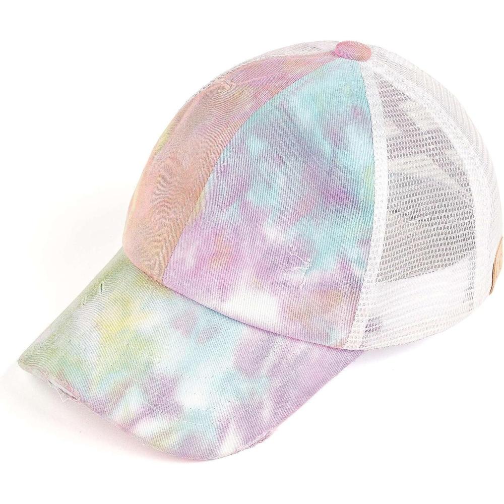 C.C. Childrens’ Kids’ Girls’ Criss Cross High Bun Adjustable Mesh Trucker Baseball Cap(Tie Dye Cotton Candy)