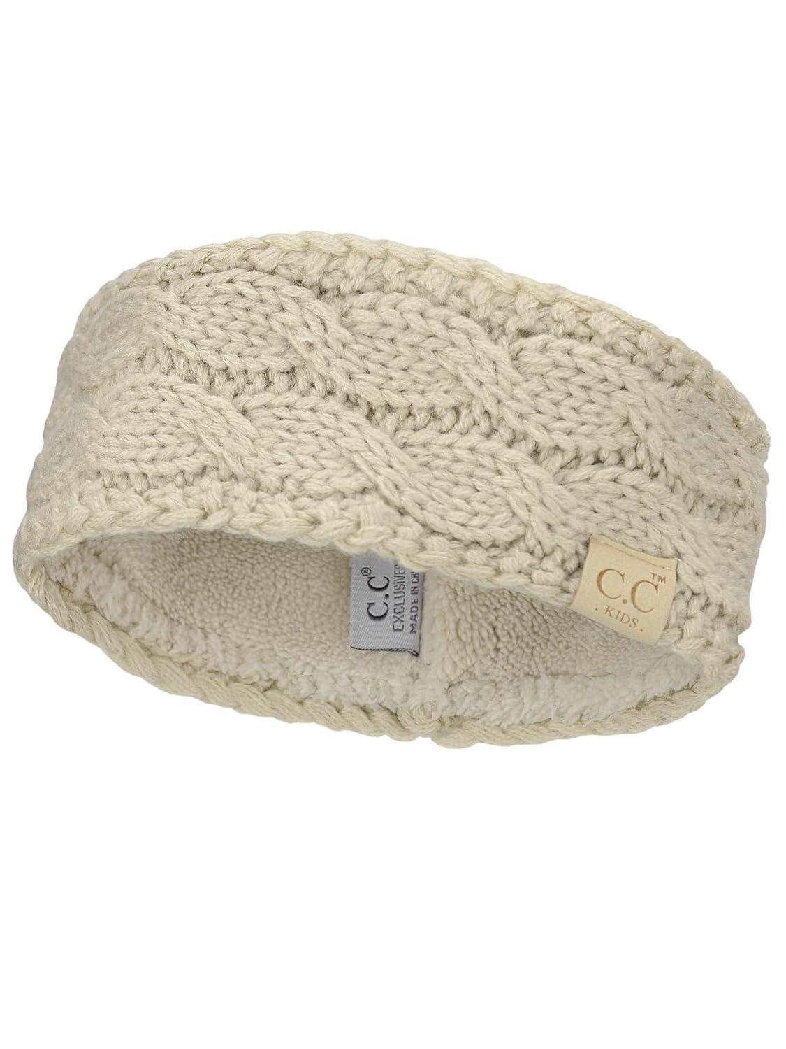imageCC Childrens Kids Winter Warm Cable Knit Fuzzy Lined Ear Warmer HeadbandBeige
