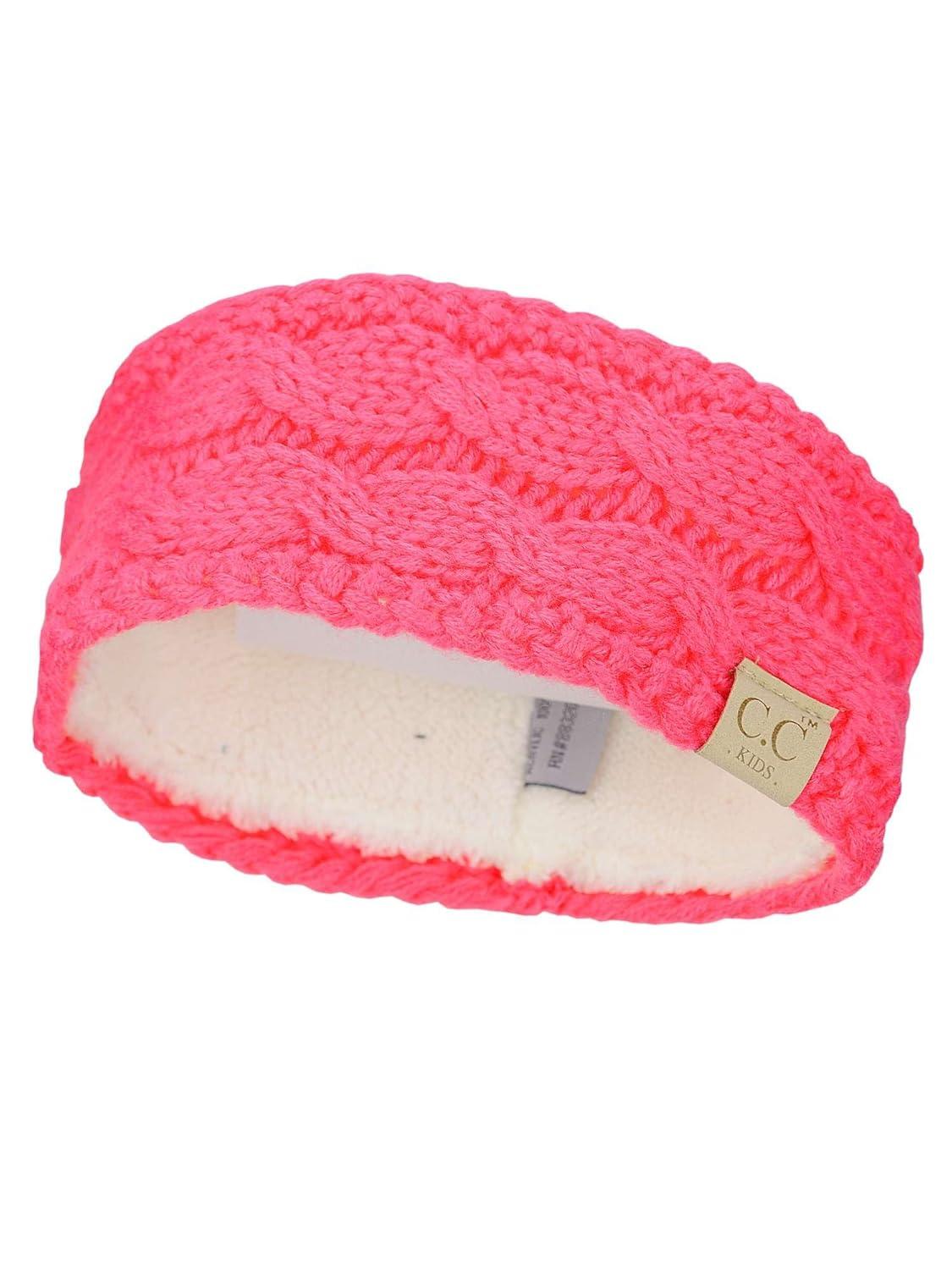 imageCC Childrens Kids Winter Warm Cable Knit Fuzzy Lined Ear Warmer HeadbandCandy Pink