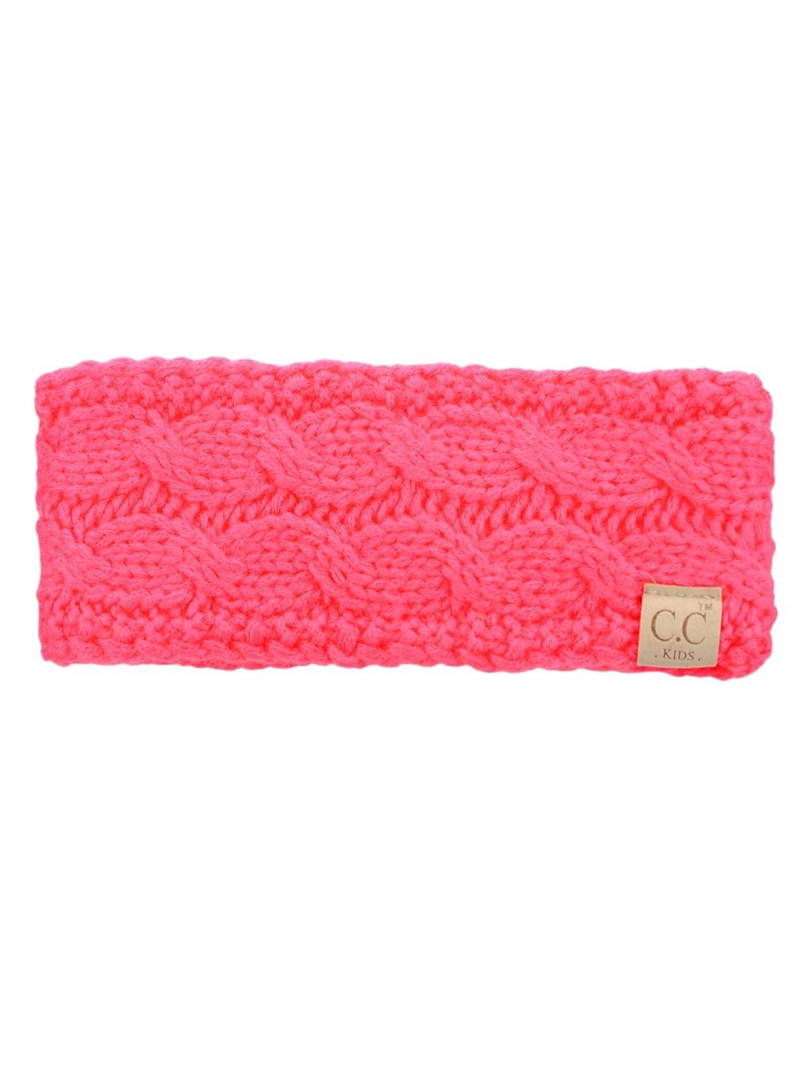 C.C Children's Kids' Winter Warm Cable Knit Fuzzy Lined Ear Warmer Headband(Candy Pink)