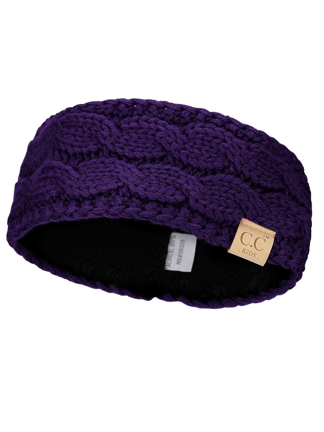 C.C Children's Kids' Winter Warm Cable Knit Fuzzy Lined Ear Warmer Headband(Dark Purple)