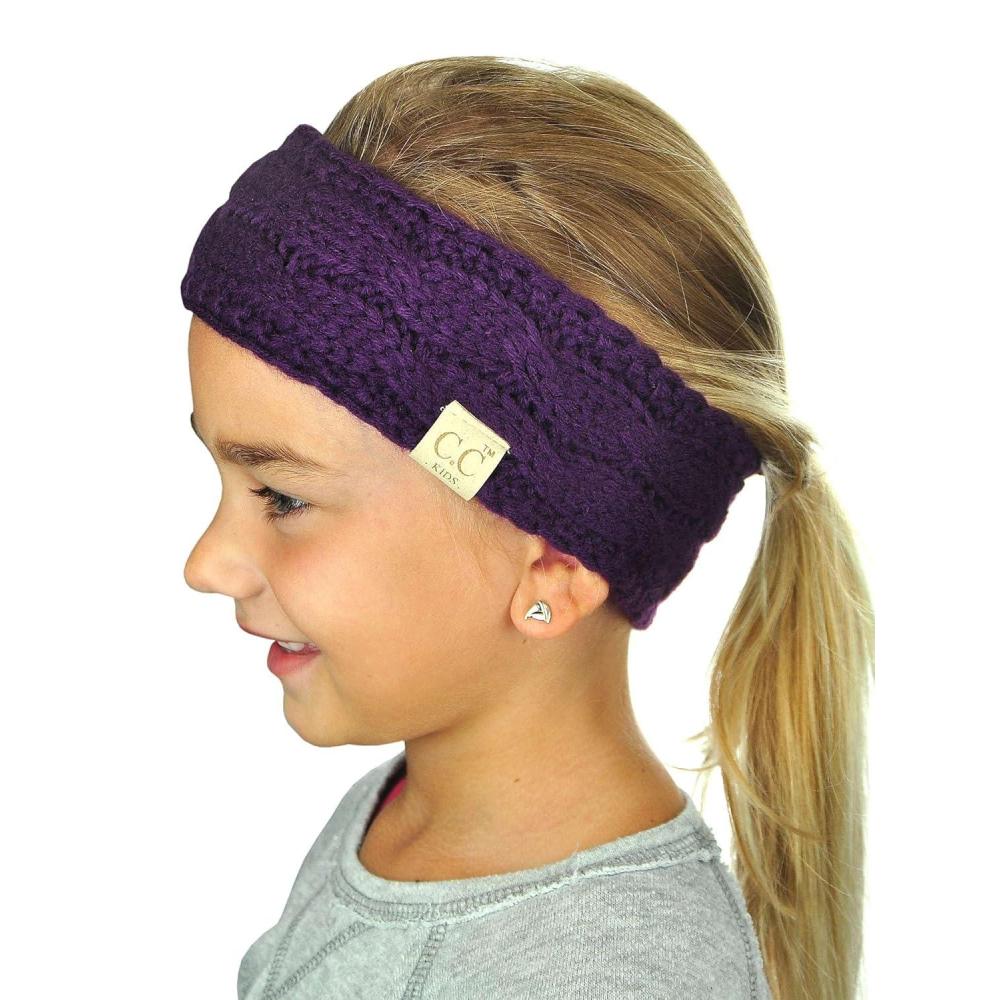 imageCC Childrens Kids Winter Warm Cable Knit Fuzzy Lined Ear Warmer HeadbandDark Purple