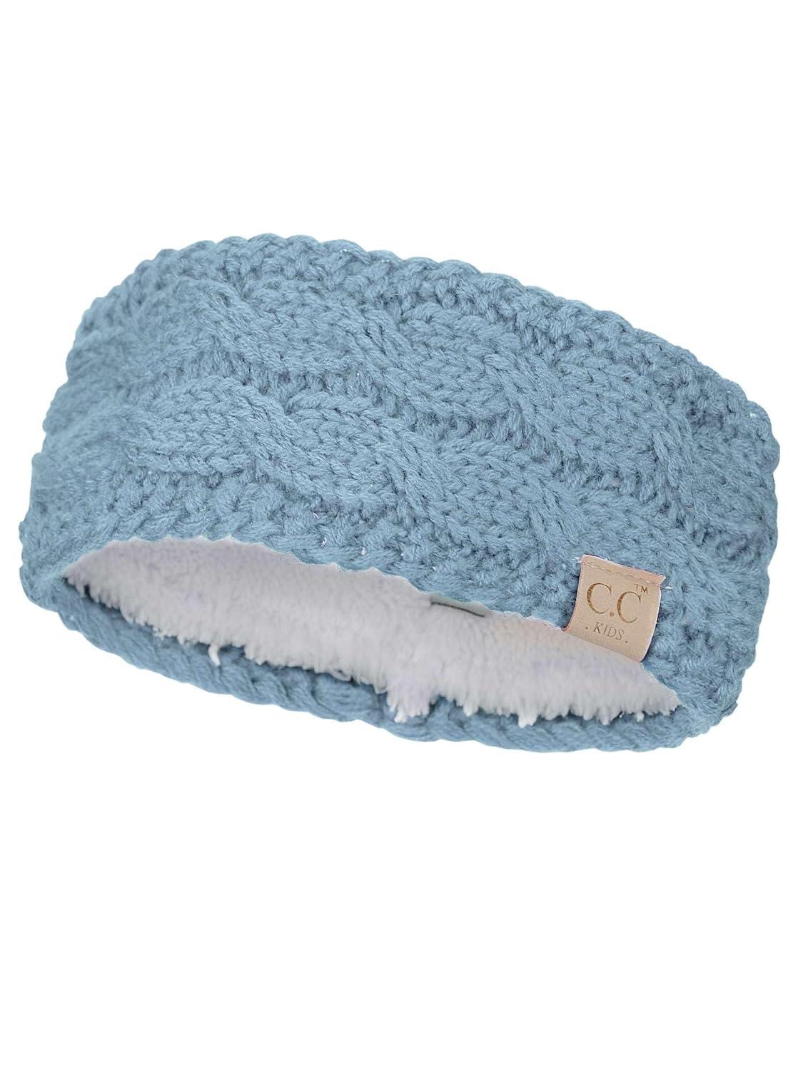 C.C Children’s Kids’ Winter Warm Cable Knit Fuzzy Lined Ear Warmer Headband(Denim)