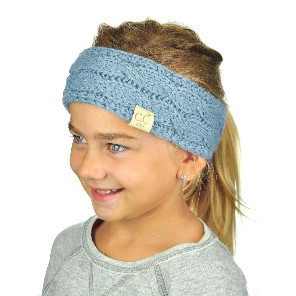 imageCC Childrens Kids Winter Warm Cable Knit Fuzzy Lined Ear Warmer HeadbandDenim