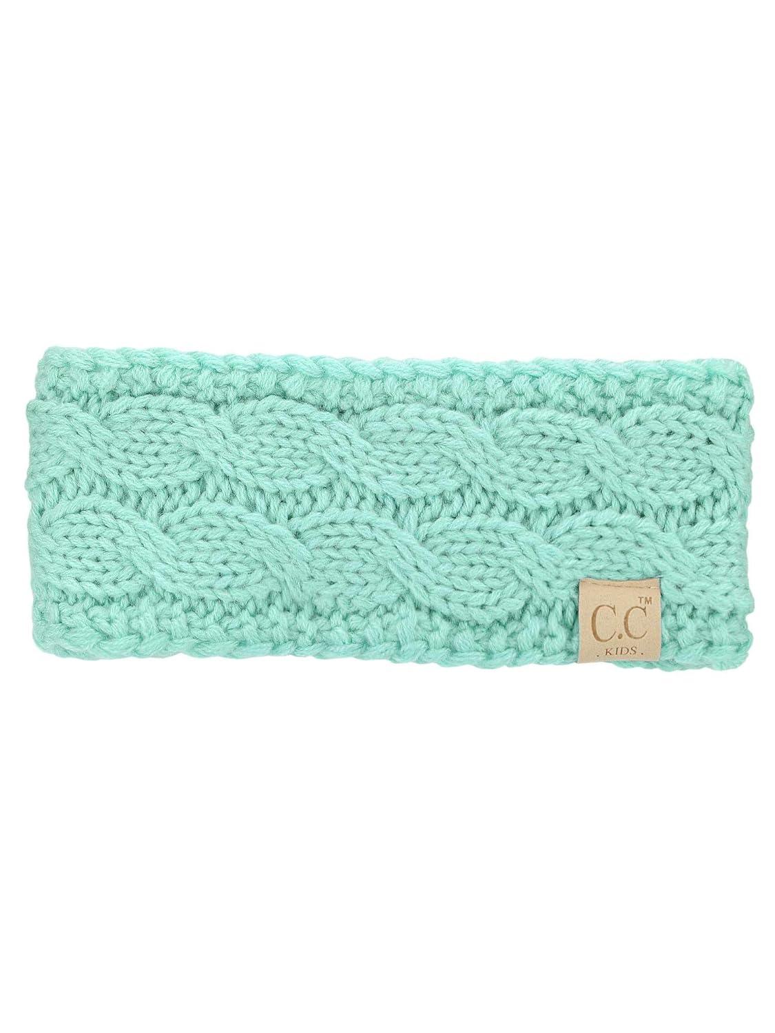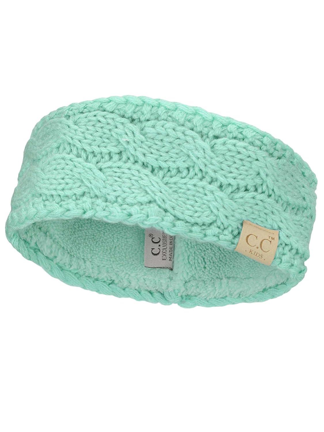 imageCC Childrens Kids Winter Warm Cable Knit Fuzzy Lined Ear Warmer HeadbandMint