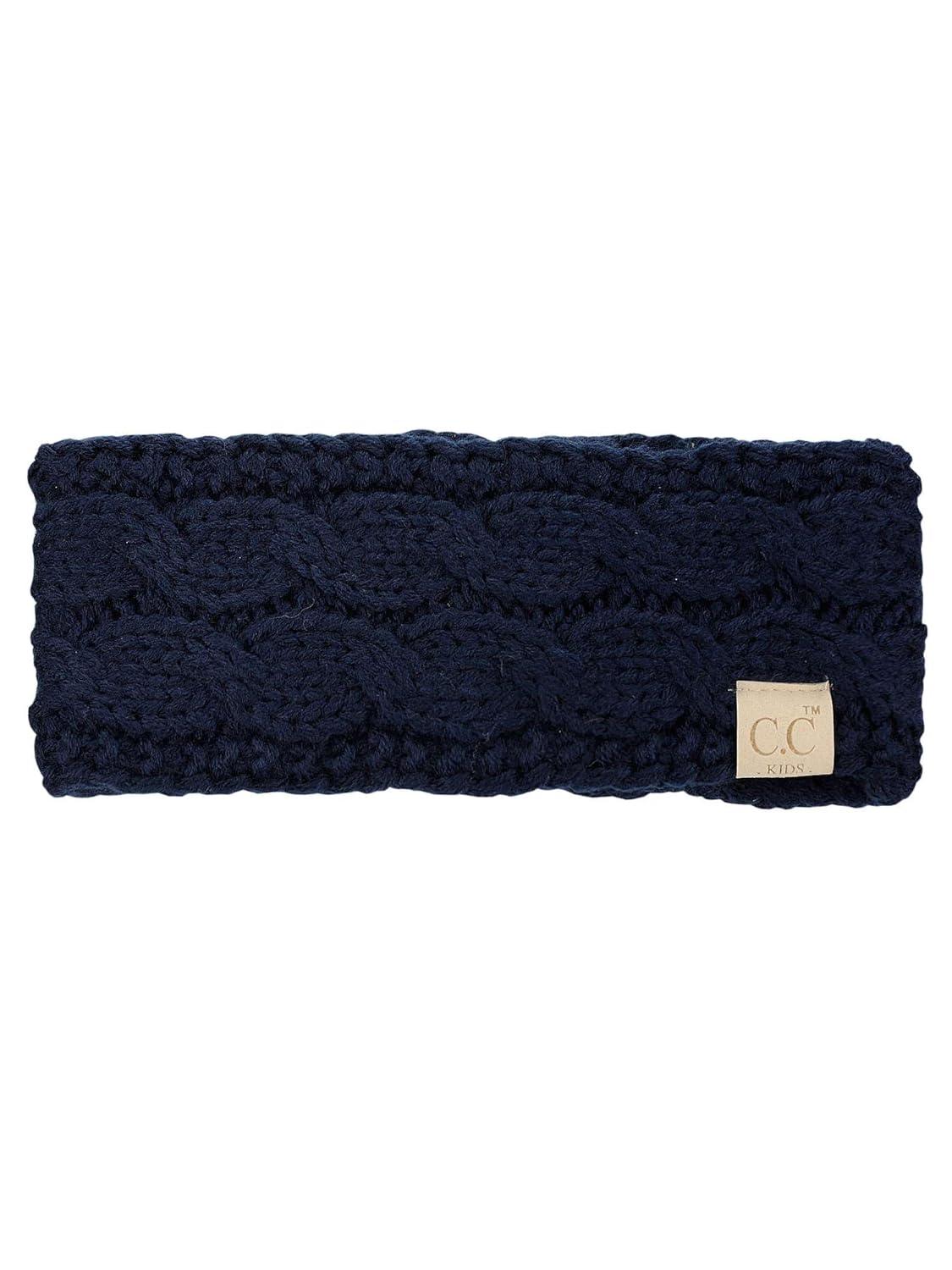 C.C Children's Kids' Winter Warm Cable Knit Fuzzy Lined Ear Warmer Headband(Navy)