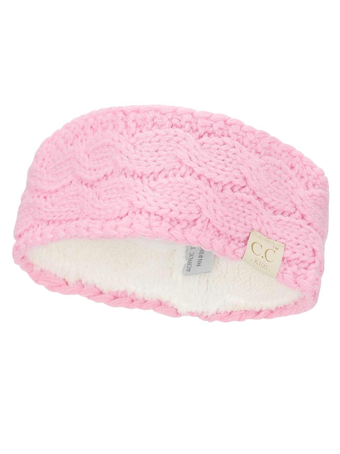 C.C Children’s Kids’ Winter Warm Cable Knit Fuzzy Lined Ear Warmer Headband(Pale Pink)