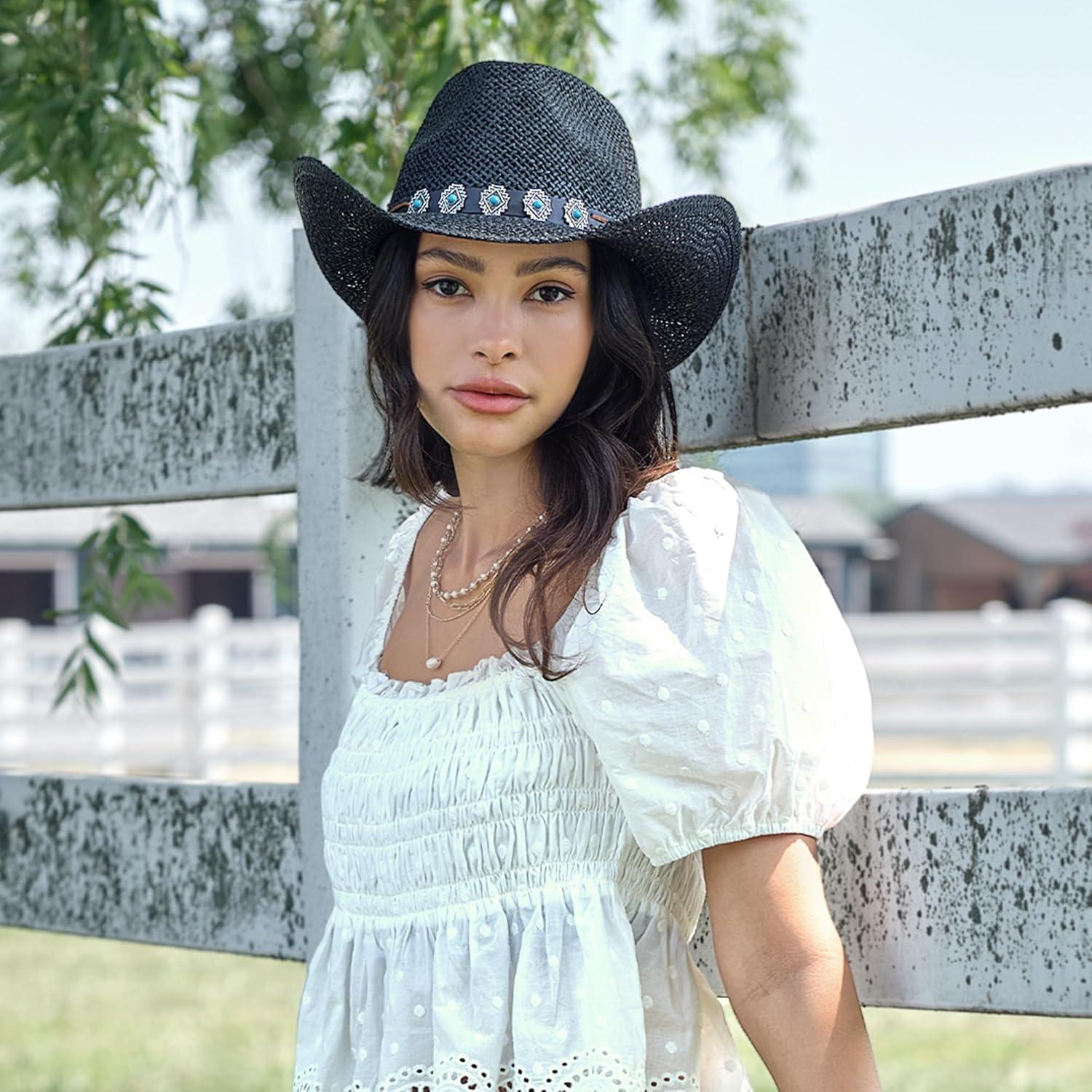 Score big on C.C Classic Western Wide Roll up Brim Turquoise Charm Trim Band Cowboy Cowgirl Hat(Black) and accessories during our BOGO sale. Buy one, get one 50% off!
