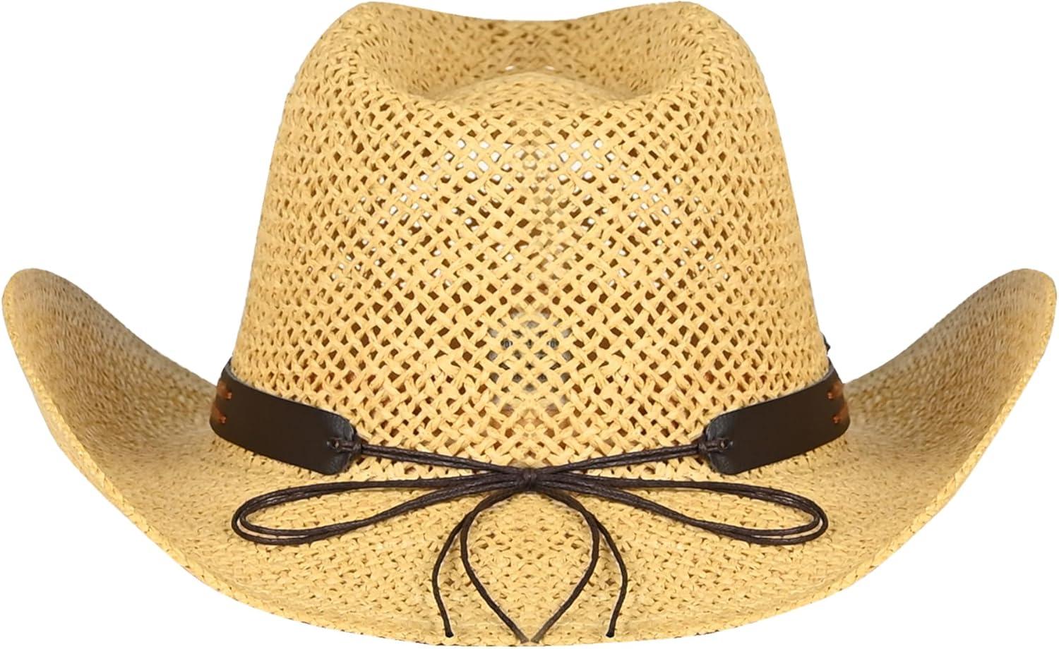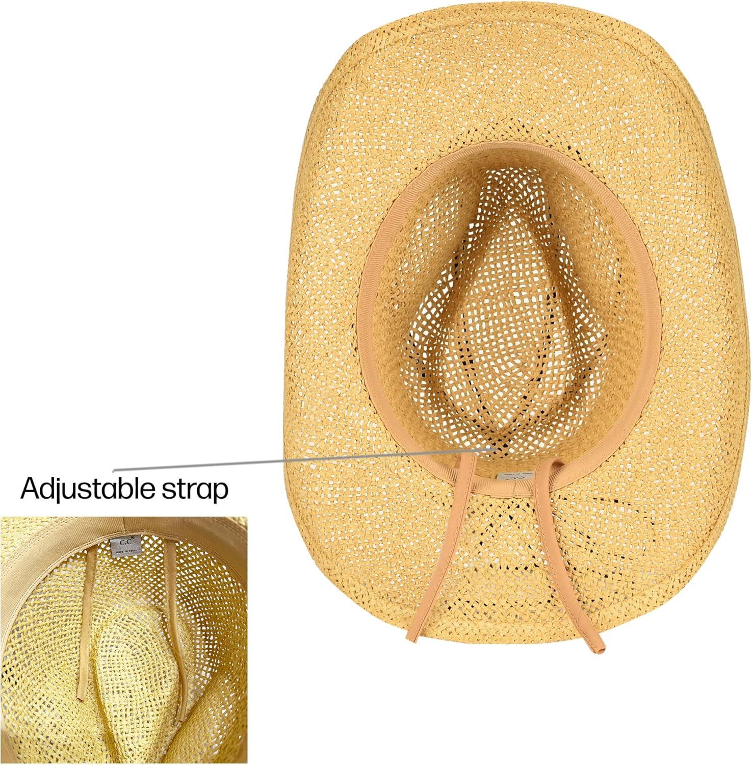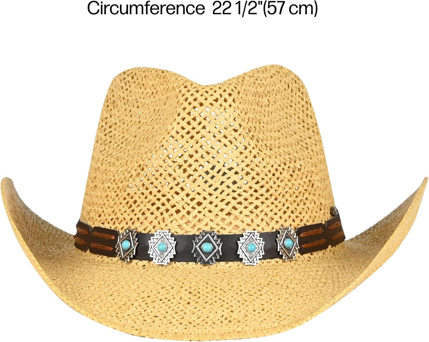 C.C Classic Western Wide Roll up Brim Turquoise Charm Trim Band Cowboy Cowgirl Hat(Open Weaved_black)