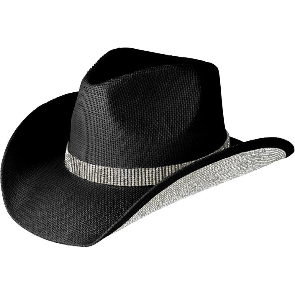 C.C Classic Western Wide Roll up Brim Turquoise Charm Trim Band Cowboy Cowgirl Hat(Under Brim Rhinestone_black)