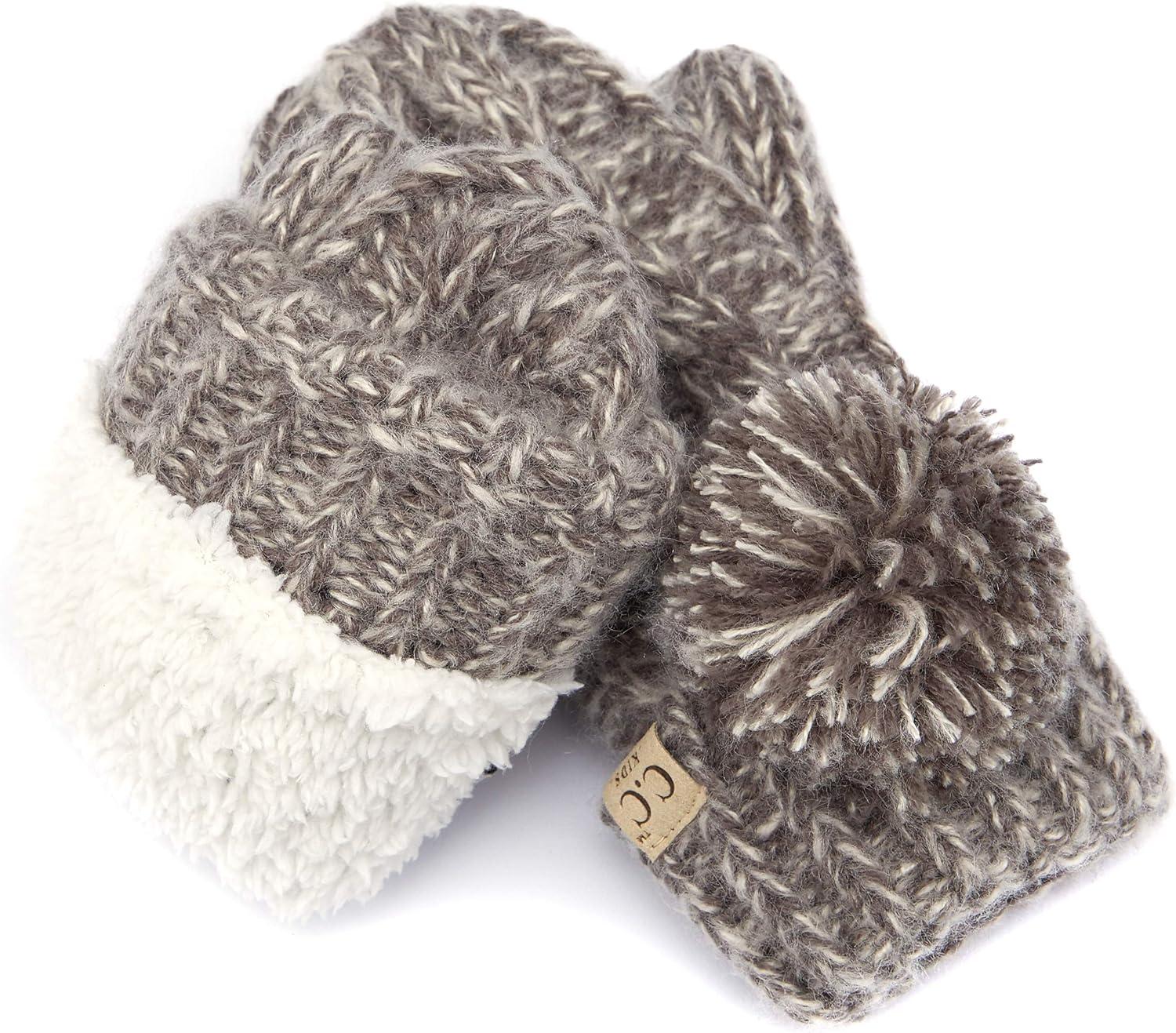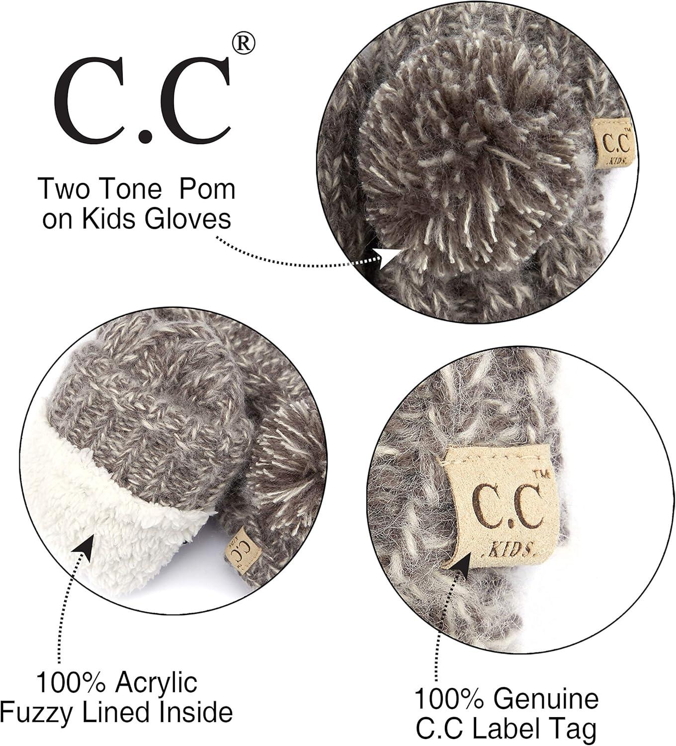 C.C Colorful Knit Children’s Mittens – Cozy with Pom Pom Accent(2 Tone – Dk. Grey)