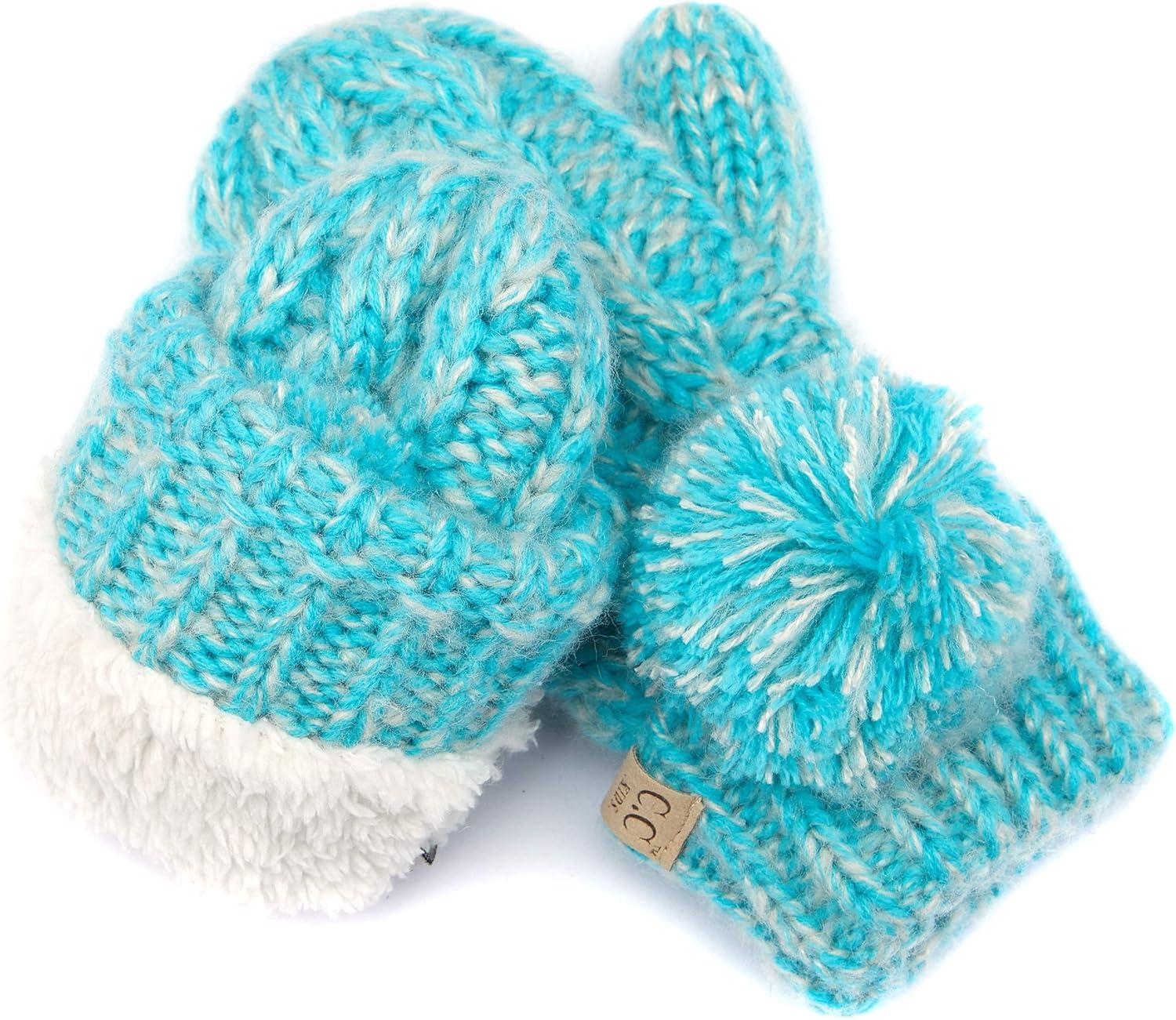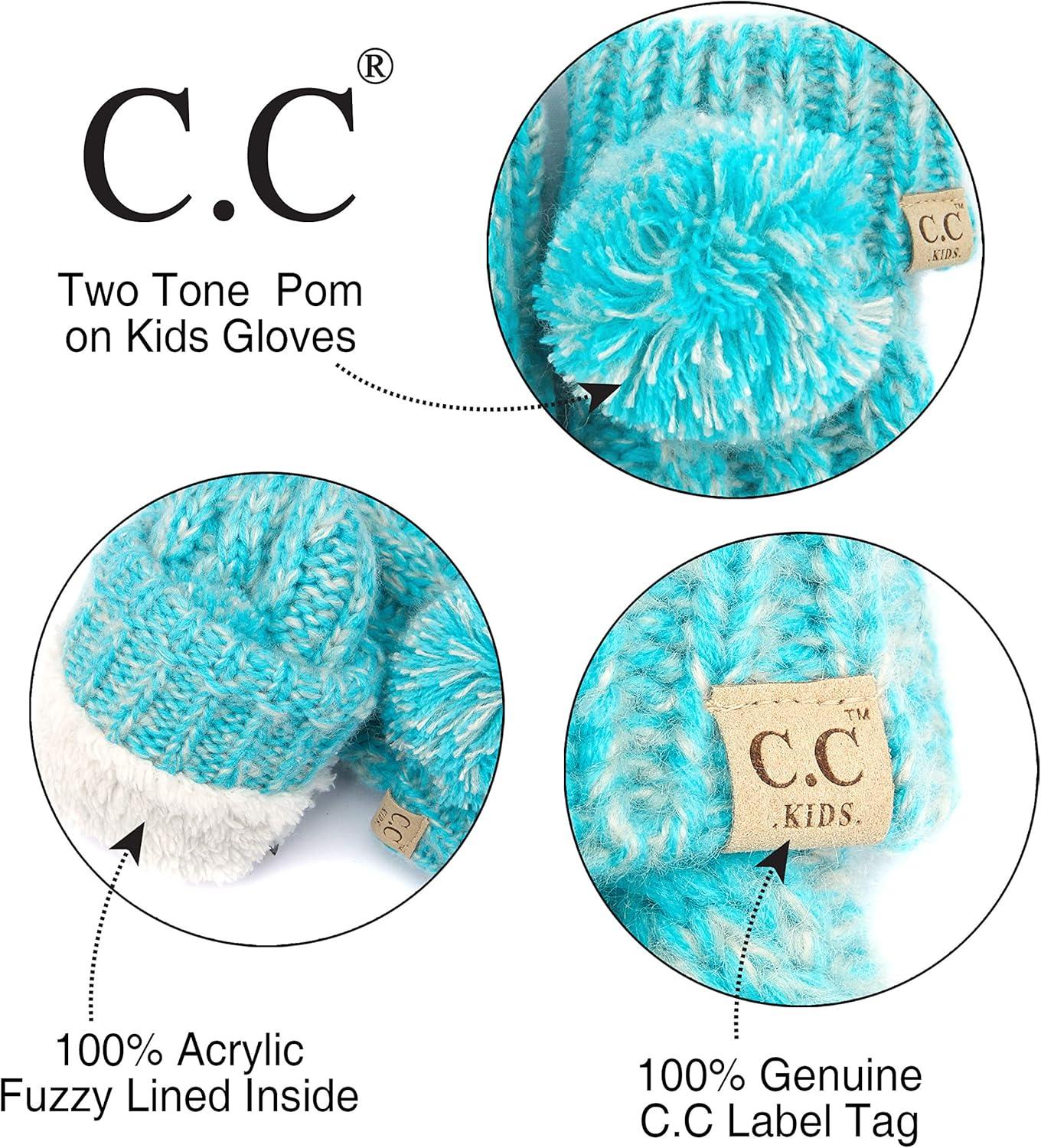C.C Colorful Knit Children’s Mittens – Cozy with Pom Pom Accent(2 Tone – Mint)