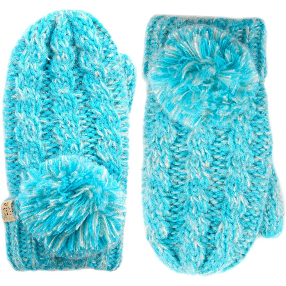 C.C Colorful Knit Children's Mittens – Cozy with Pom Pom Accent(2 Tone - Mint)